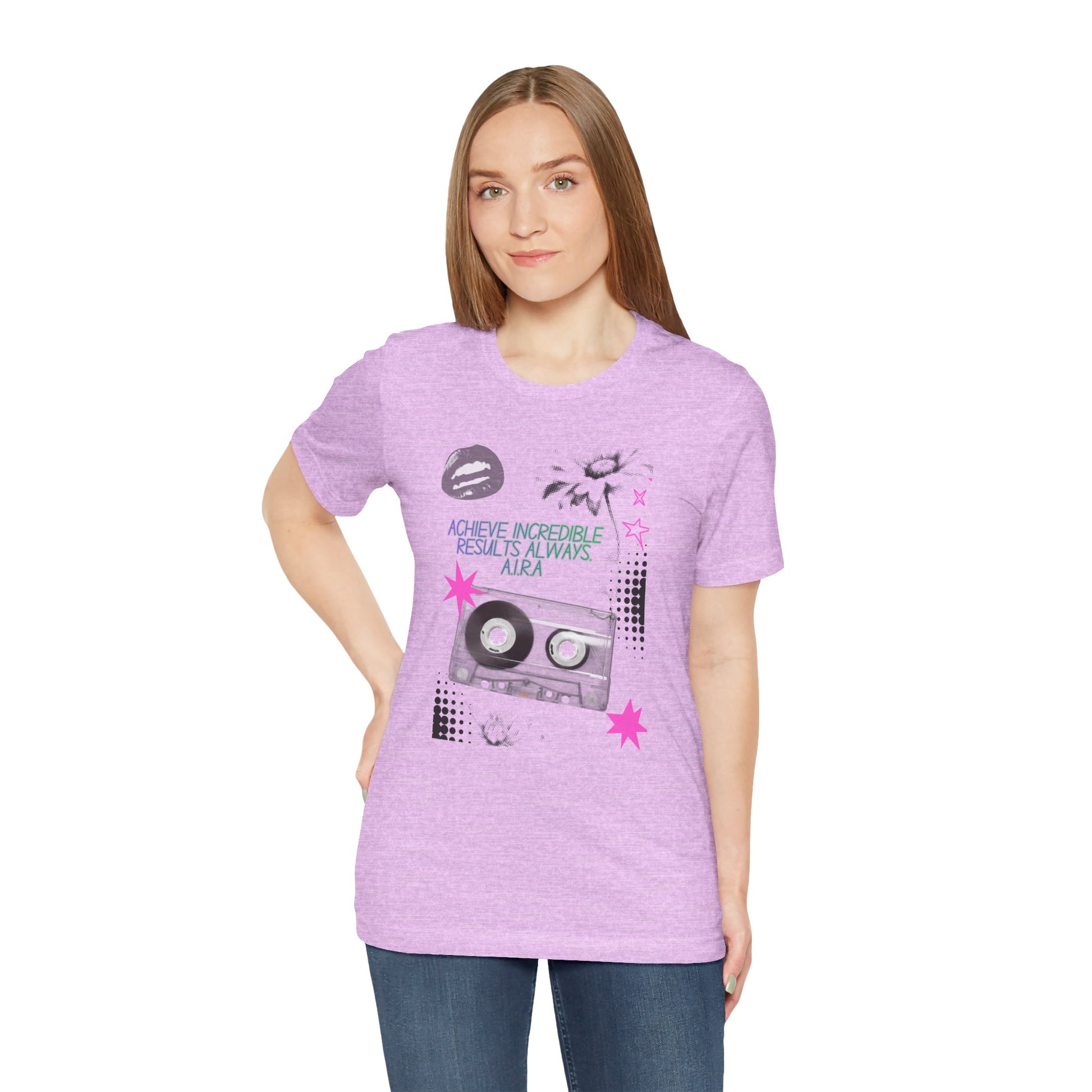 | This lightweight cotton tee carries a retro, mixtape-era vibe with modern street-art accents. Soft Airlume combed cotton keeps it breathable and comfortable whether you’re layering or wearing it solo. The front design mixes a vintage cassette, playful pink stars, halftone dots, and bold typography to create a nostalgic yet fresh look that feels personal — like a playlist for long drives, late nights, and creative hustle. Wear it to inject a little analog warmth into your day, to spark conversation at a gig, or to add a casual, artful edge to a weekend outfit. |