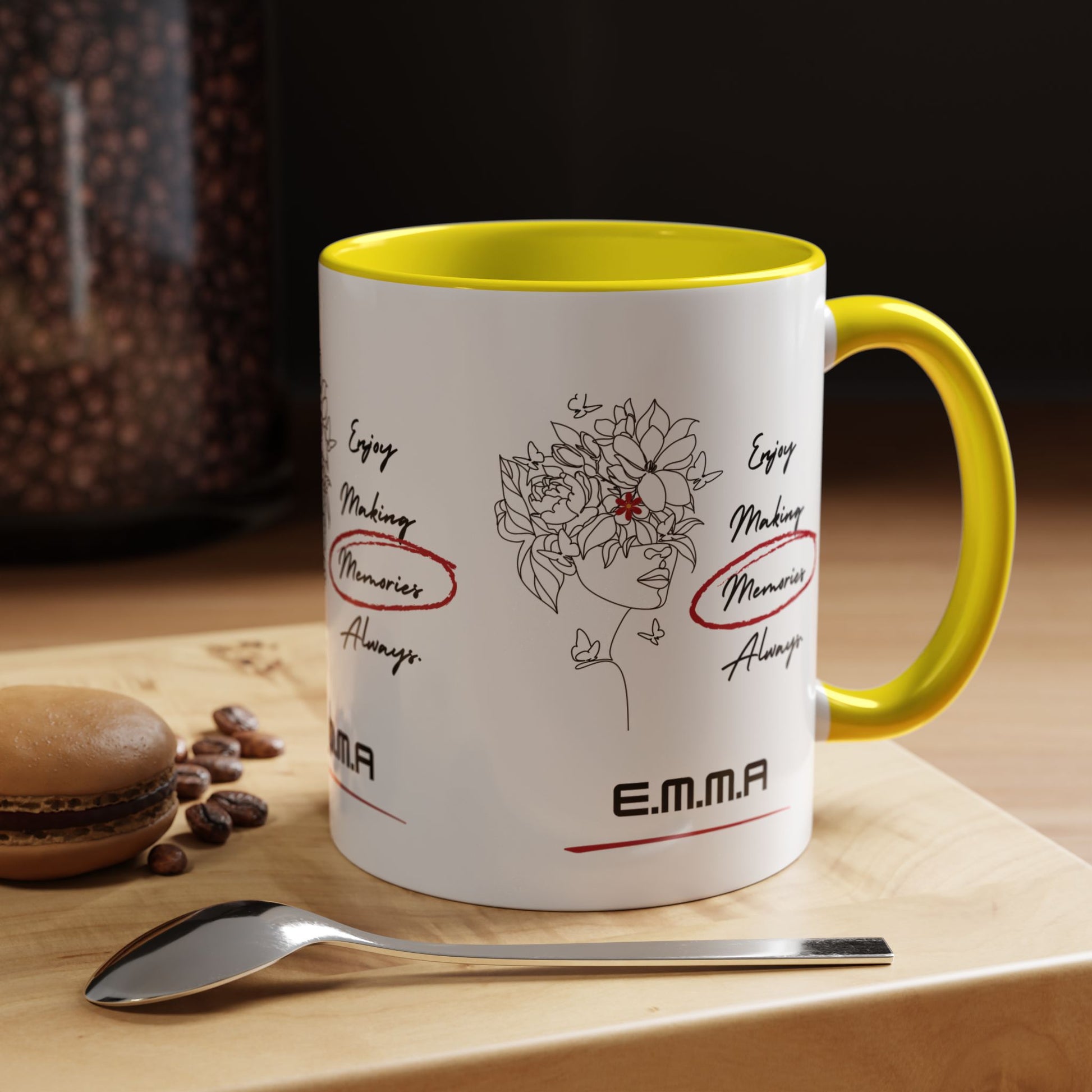 This ceramic mug brings a small, personal moment to the everyday. Each piece features a bright, crisp print of a personalized initial or short quote — a quiet nod to someone you care about over morning coffee or a late-night tea. The colored interior and handle create a cheerful contrast against the glossy white exterior, and the bold colors hold up wash after wash. It feels like a familiar pause: warm beverage in hand, that little initial catching your eye and connecting you to the people who matter. Suited to cozy kitchen counters, shared office desks, and thoughtful swaps between friends across the UK and USA.
