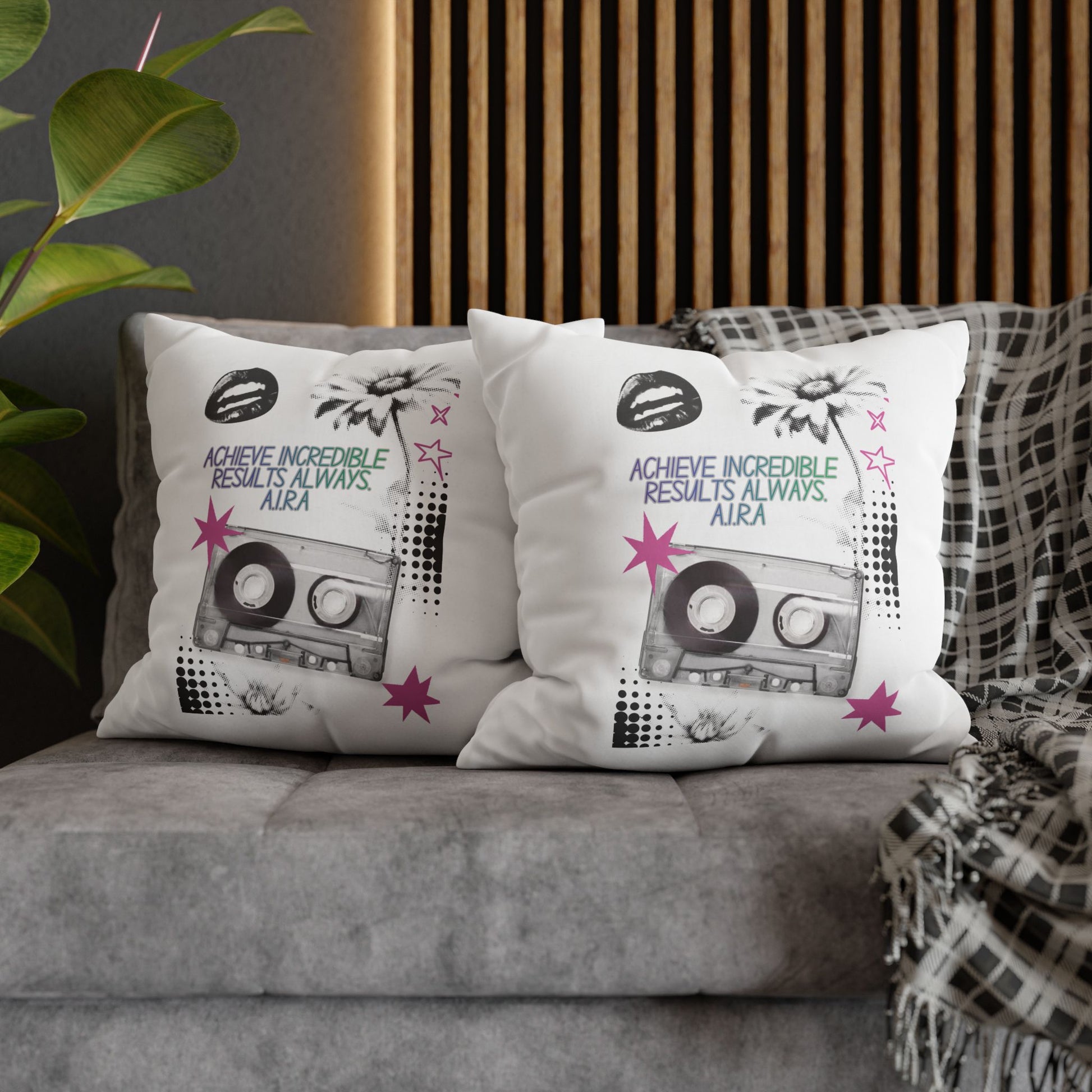 Personalized Initial Quote Cassette — Custom Sayings on Square Poly Canvas Pillowcase
