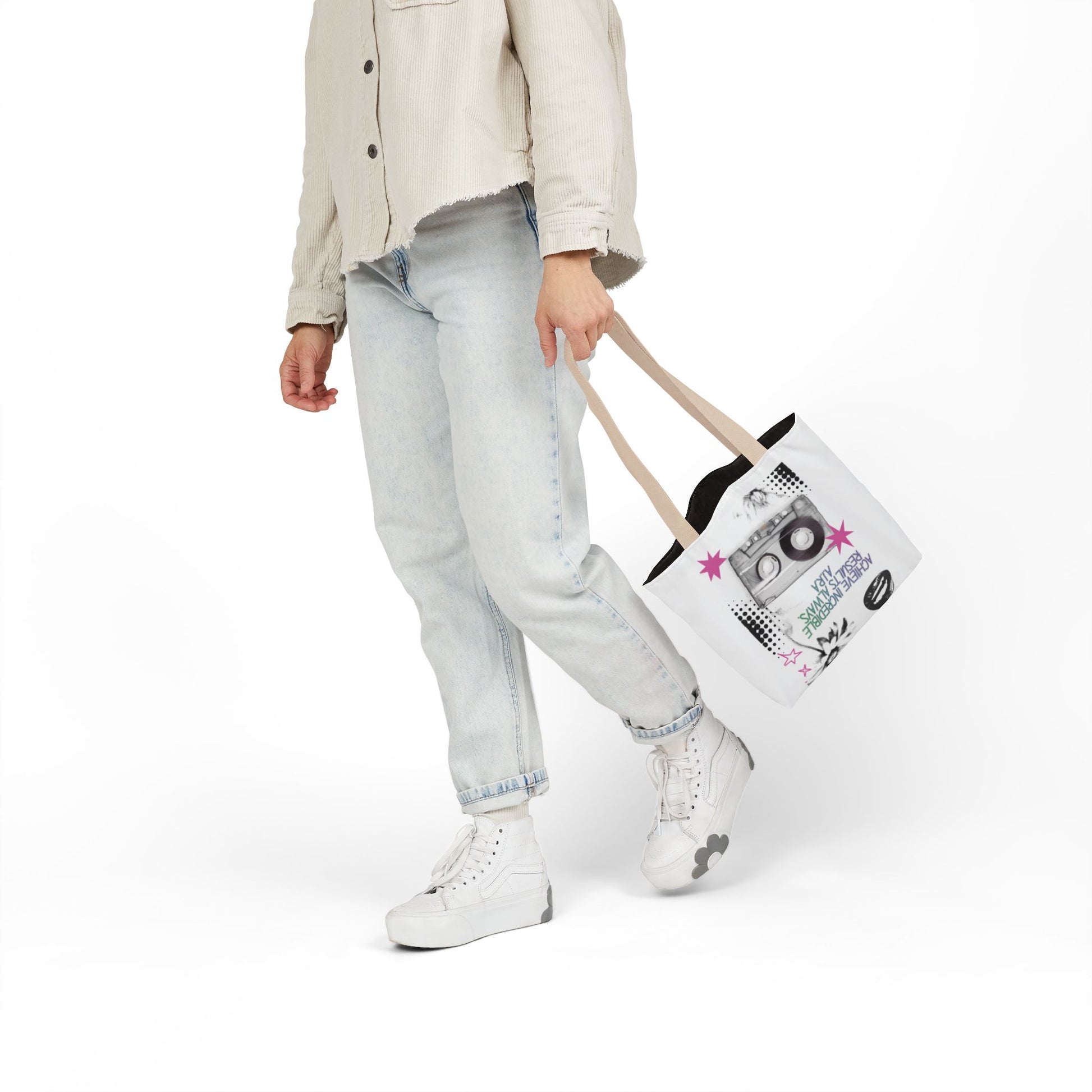 Personalized Initial Quote Cassette Vibes Canvas Tote Custom Name
