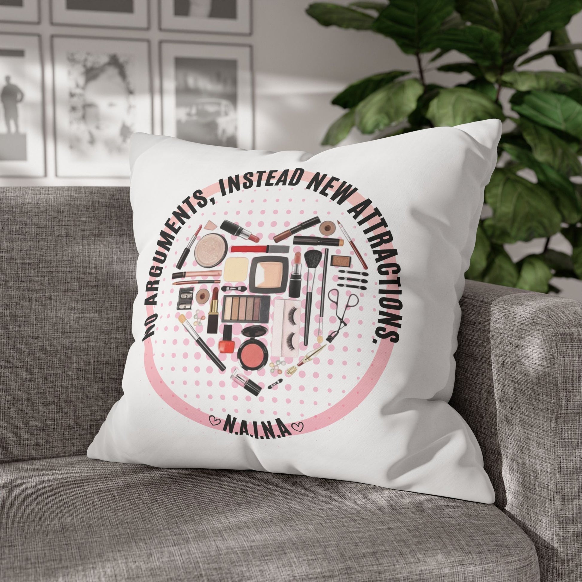 Personalized Initial Quote Cosmetic Heart — Custom Sayings on Square Poly Canvas Pillowcase