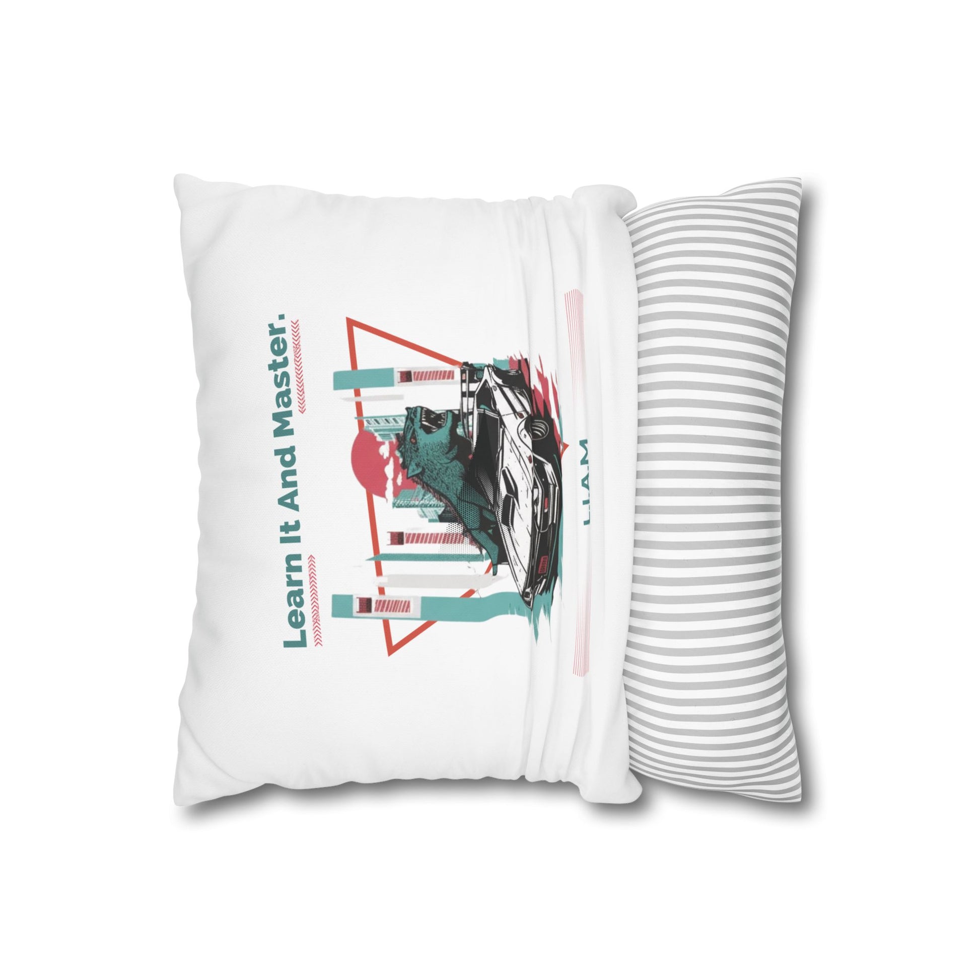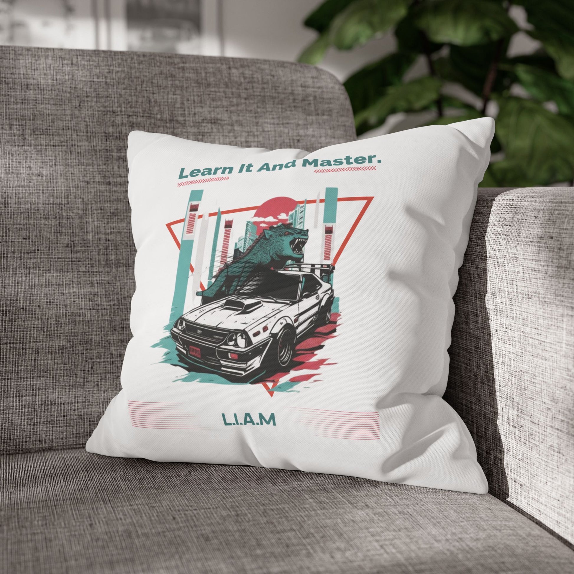 Personalized Initial Quote Dinosaur Car — Custom Sayings on Square Poly Canvas Pillowcase