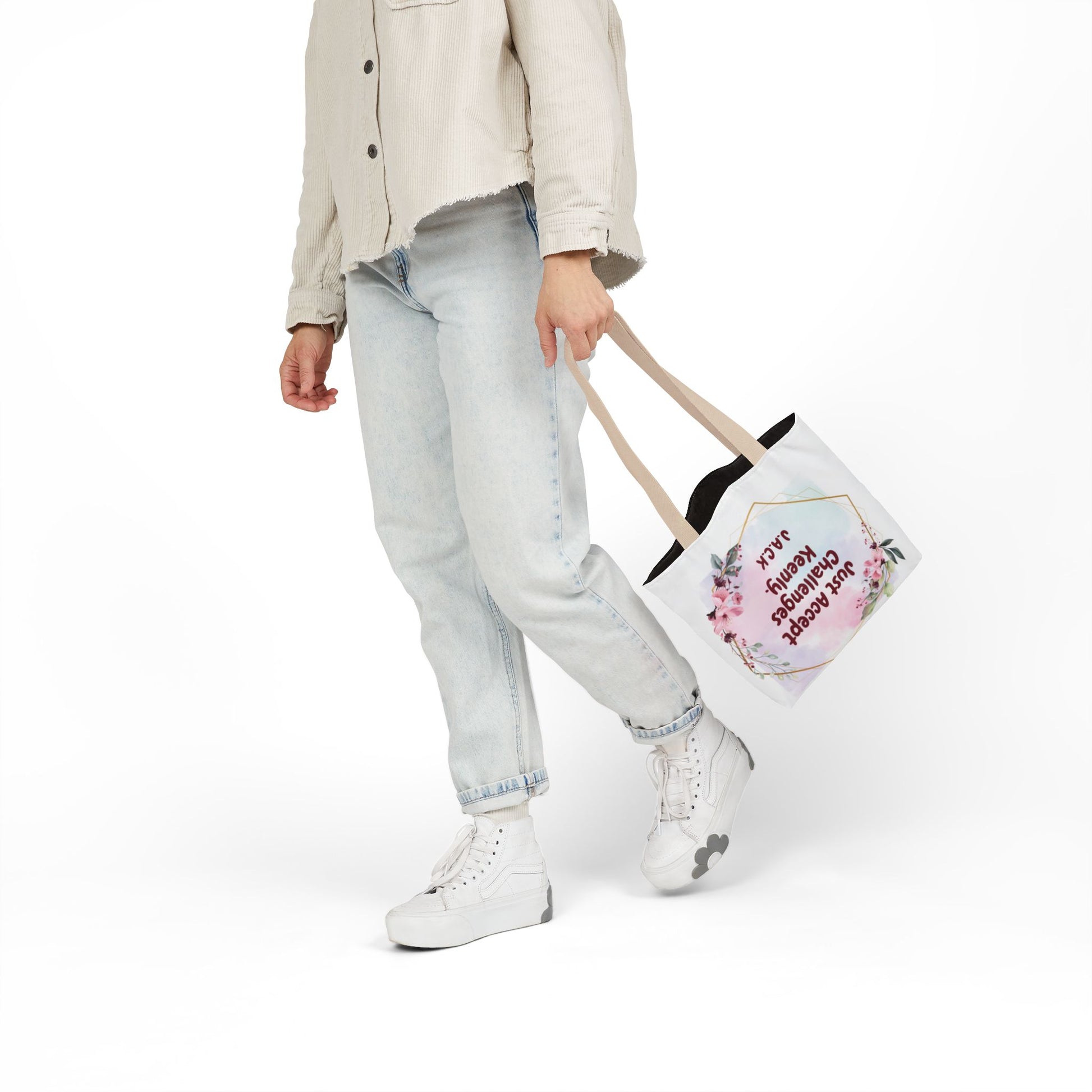 A roomy, personality-forward canvas tote that carries more than just items — it carries a name. Each bag is printed edge-to-edge with a custom quote derived from the recipient’s initials, then dressed in one of five strap colors to match mood or style. The fine-weave polyester canvas feels soft to the touch, and boxed corners give the bag extra room so it holds groceries, sketchbooks, or a day’s worth of market finds without folding in on itself. Vibrant, all-over printing keeps the lettering and artwork lively and bold through daily use. Ships from the US and UK, so your personalized message arrives with care whether it’s across town or across the pond.
