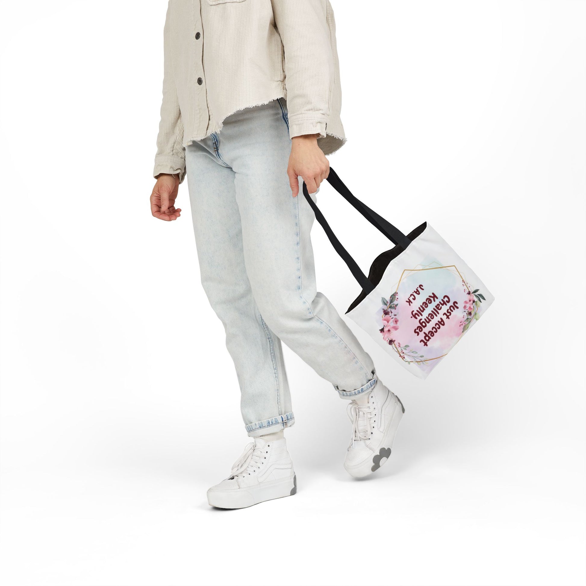 Personalized Initial Quote Floral Frame Canvas Tote Custom Name
