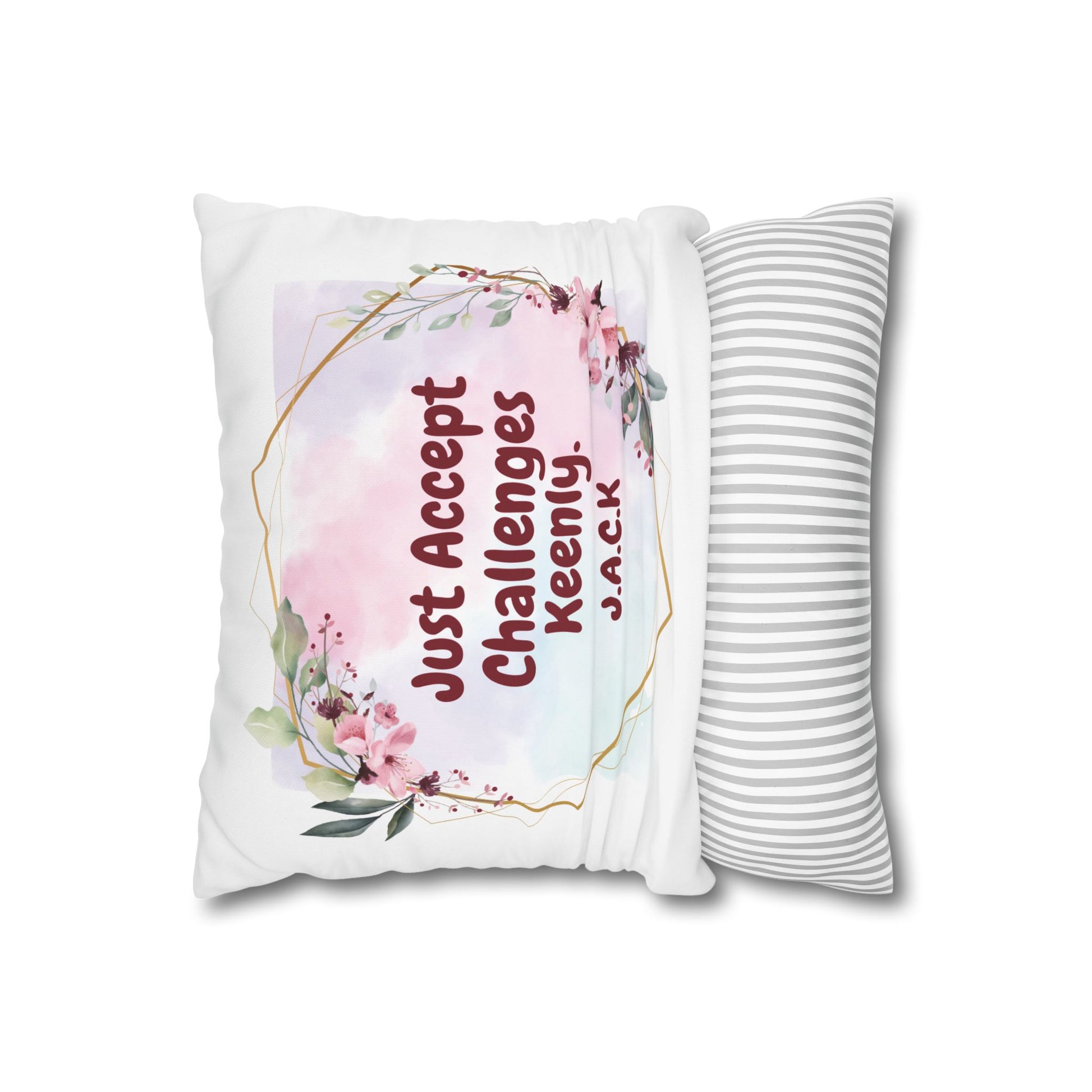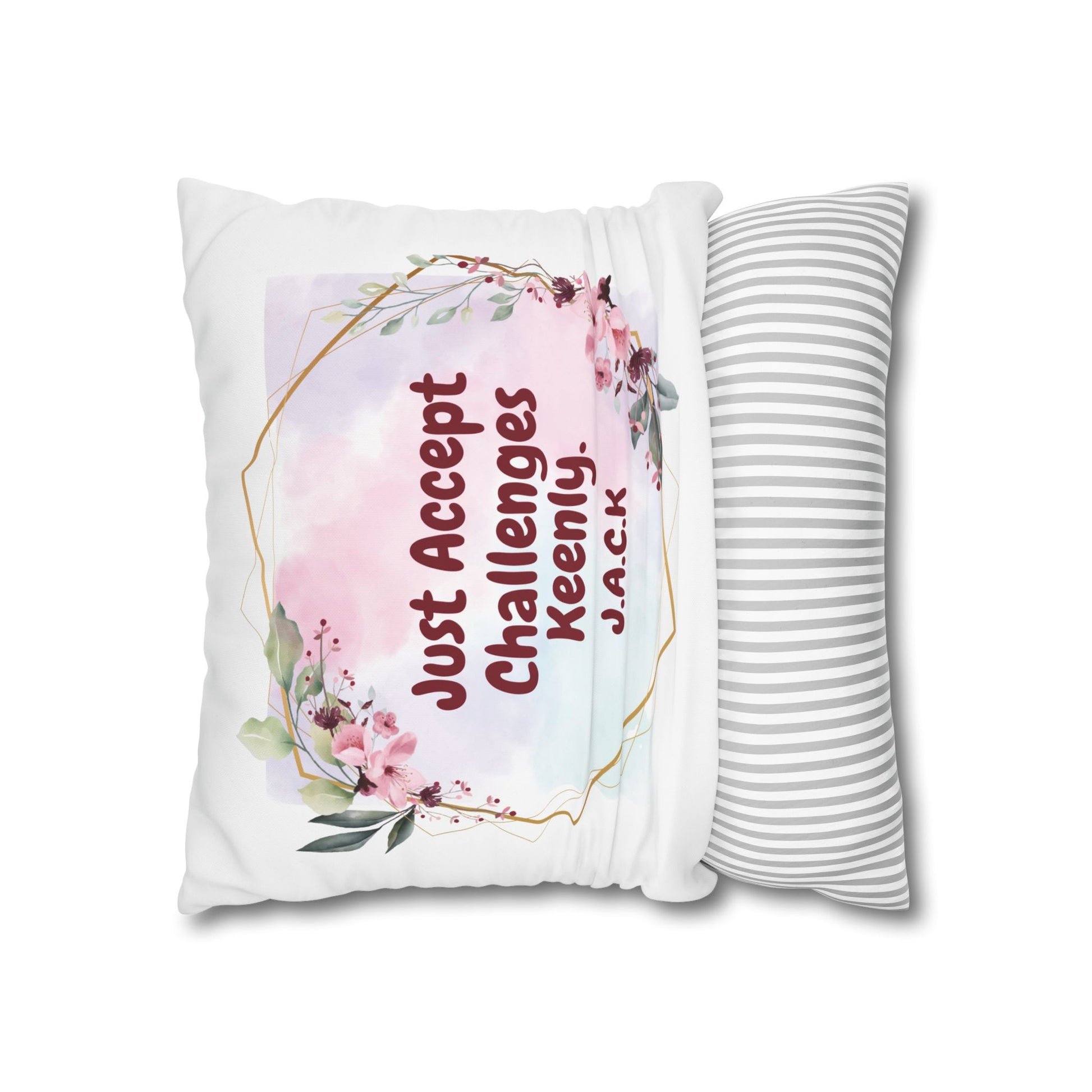 Personalized Initial Quote Floral Frame — Custom Sayings on Square Poly Canvas Pillowcase