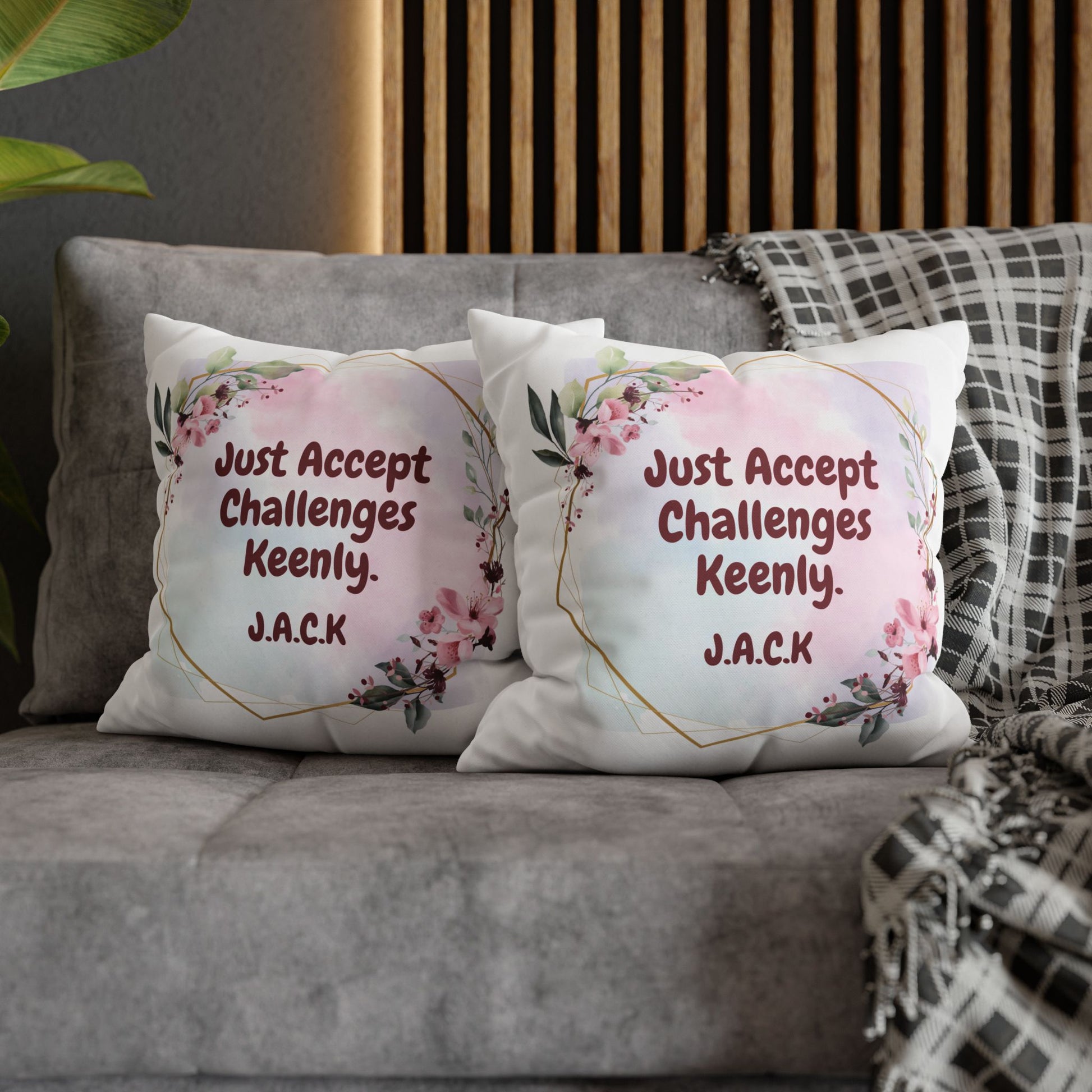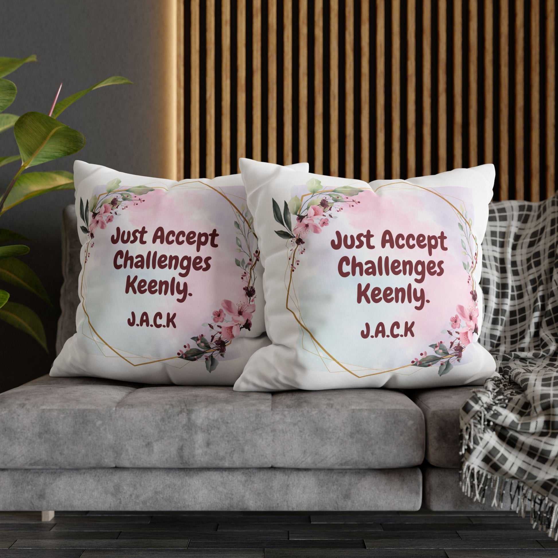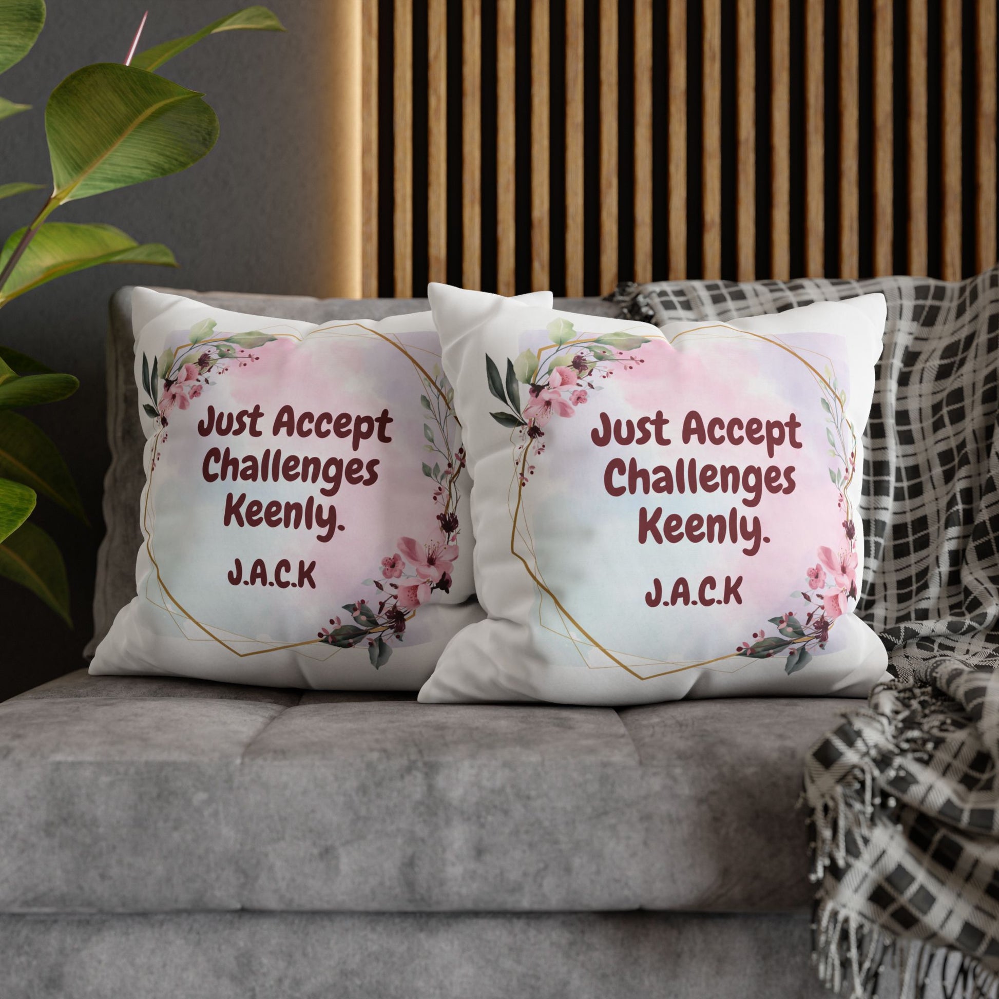 This square poly canvas pillowcase brings a playful, personalized touch to living spaces. Each piece features initials-inspired quotes—short, witty lines generated from first-name initials—paired with complementary graphic elements. The double-sided prints keep both sides lively, with bright, saturated colors that hold up wash after wash. The concealed white metal zipper creates a clean edge while allowing easy removal; note that the insert is not included. Place it on a favorite armchair, layer it on a sofa, or tuck it into a reading nook to add personality and a smile to everyday moments.