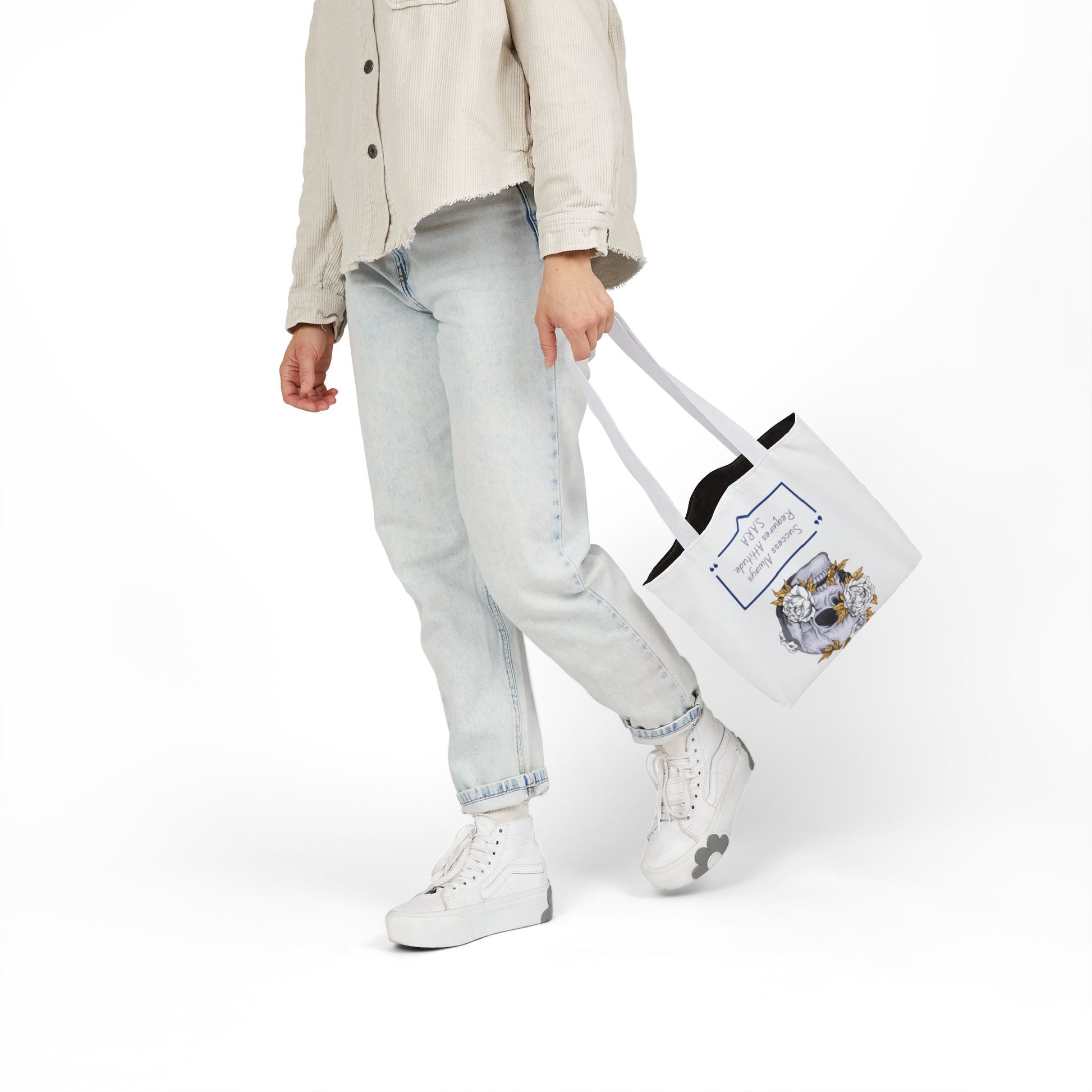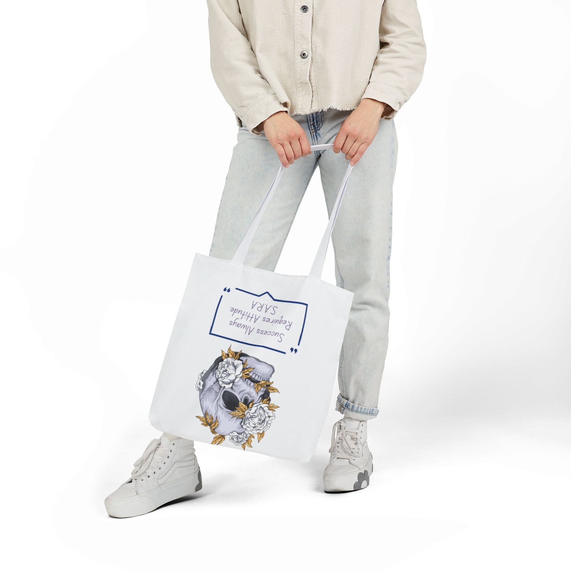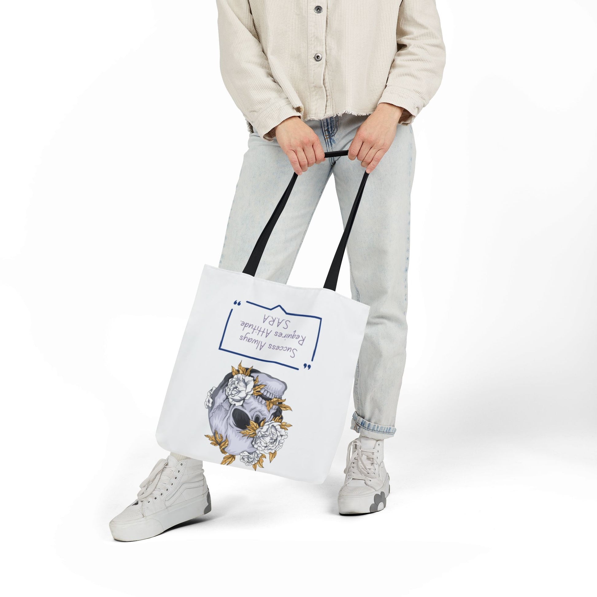 Personalized Initial Quote Floral Skull Canvas Tote Custom Name