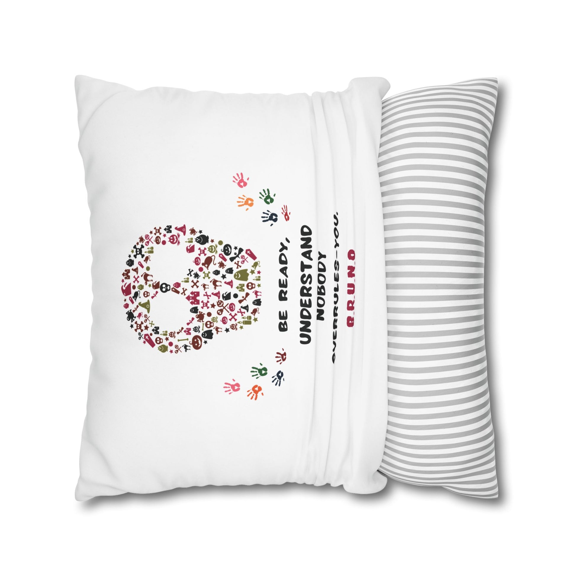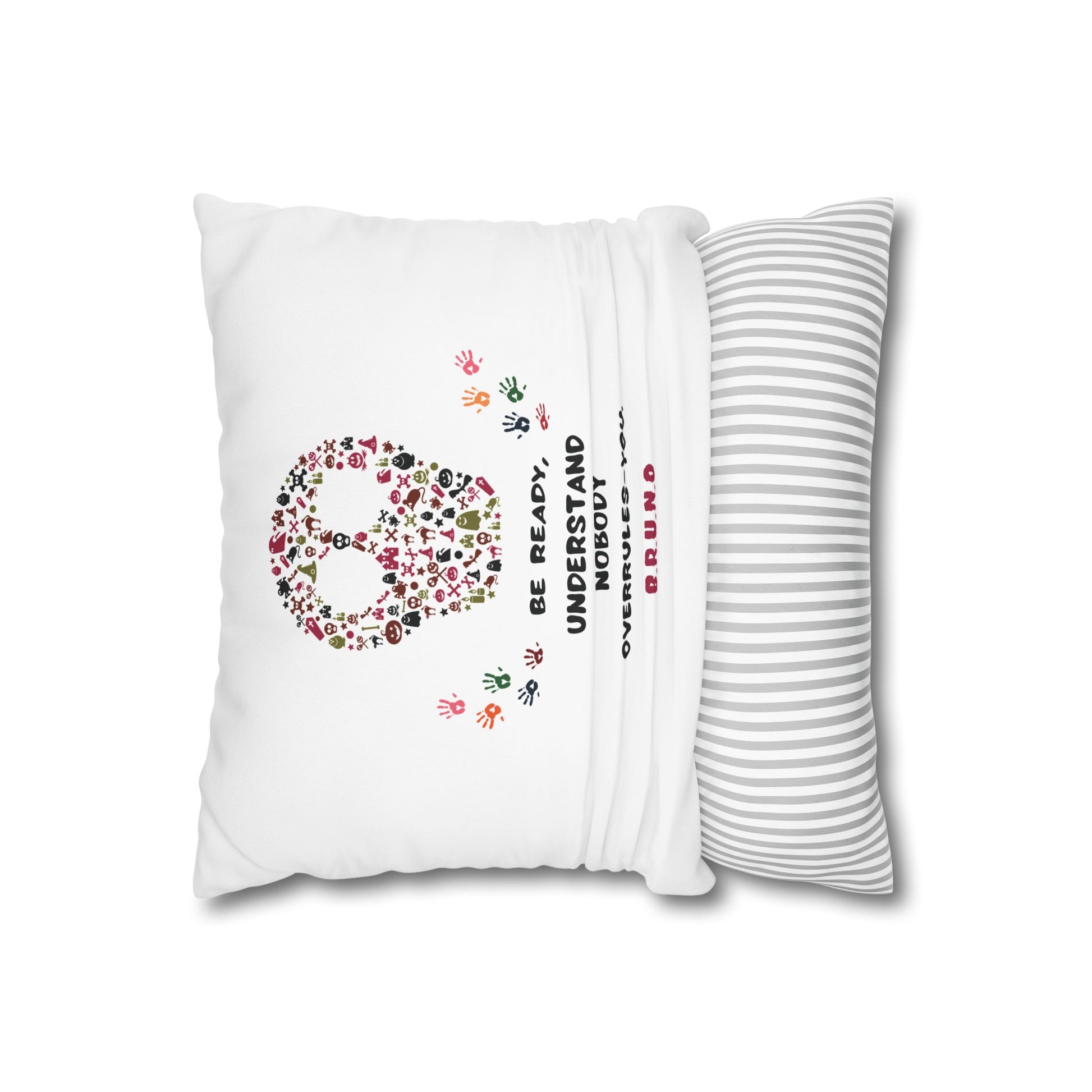 This square poly canvas pillowcase brings a playful, personalized touch to living spaces. Each piece features initials-inspired quotes—short, witty lines generated from first-name initials—paired with complementary graphic elements. The double-sided prints keep both sides lively, with bright, saturated colors that hold up wash after wash. The concealed white metal zipper creates a clean edge while allowing easy removal; note that the insert is not included. Place it on a favorite armchair, layer it on a sofa, or tuck it into a reading nook to add personality and a smile to everyday moments.