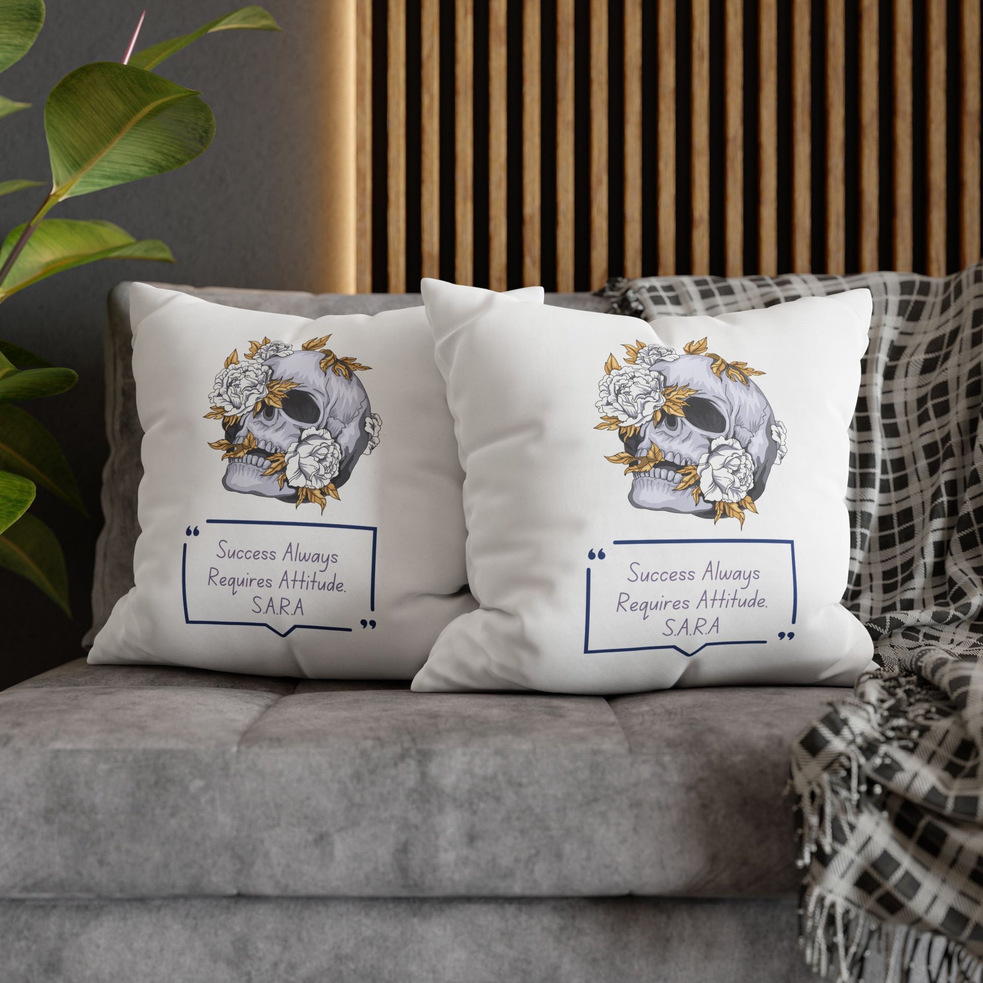 Personalized Initial Quote Floral Skull — Custom Sayings on Square Poly Canvas Pillowcase