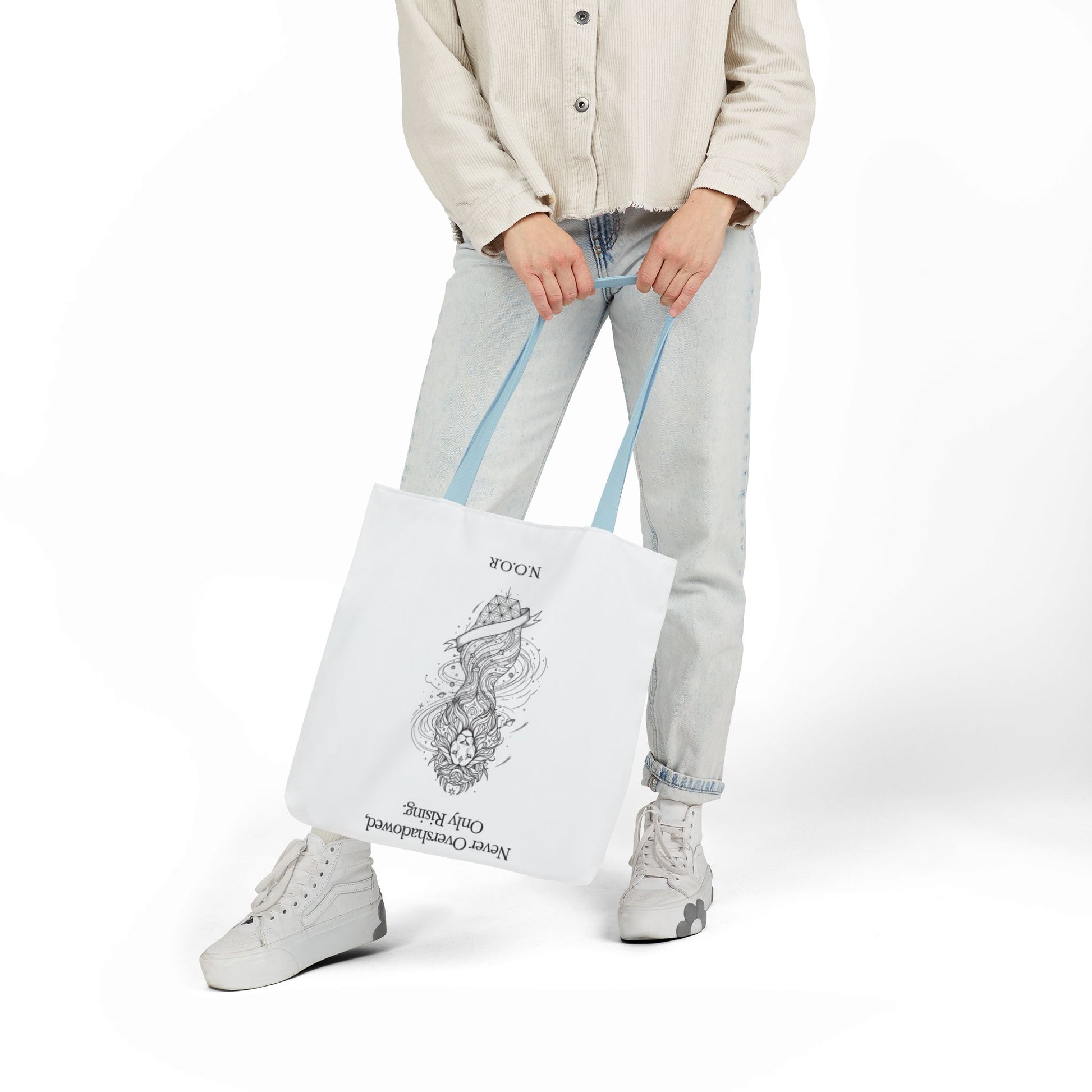 A roomy, personality-forward canvas tote that carries more than just items — it carries a name. Each bag is printed edge-to-edge with a custom quote derived from the recipient’s initials, then dressed in one of five strap colors to match mood or style. The fine-weave polyester canvas feels soft to the touch, and boxed corners give the bag extra room so it holds groceries, sketchbooks, or a day’s worth of market finds without folding in on itself. Vibrant, all-over printing keeps the lettering and artwork lively and bold through daily use. Ships from the US and UK, so your personalized message arrives with care whether it’s across town or across the pond.