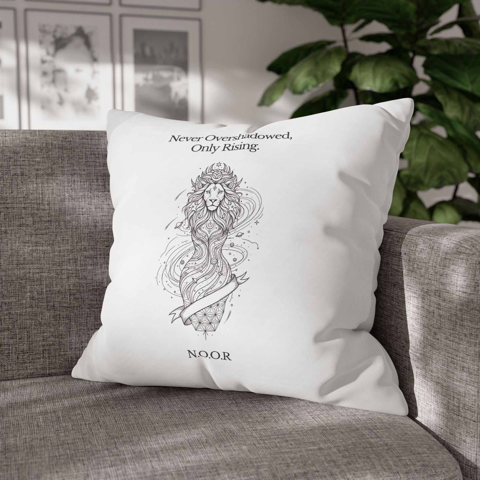 Personalized Initial Quote Girl Lion — Custom Sayings on Square Poly Canvas Pillowcase