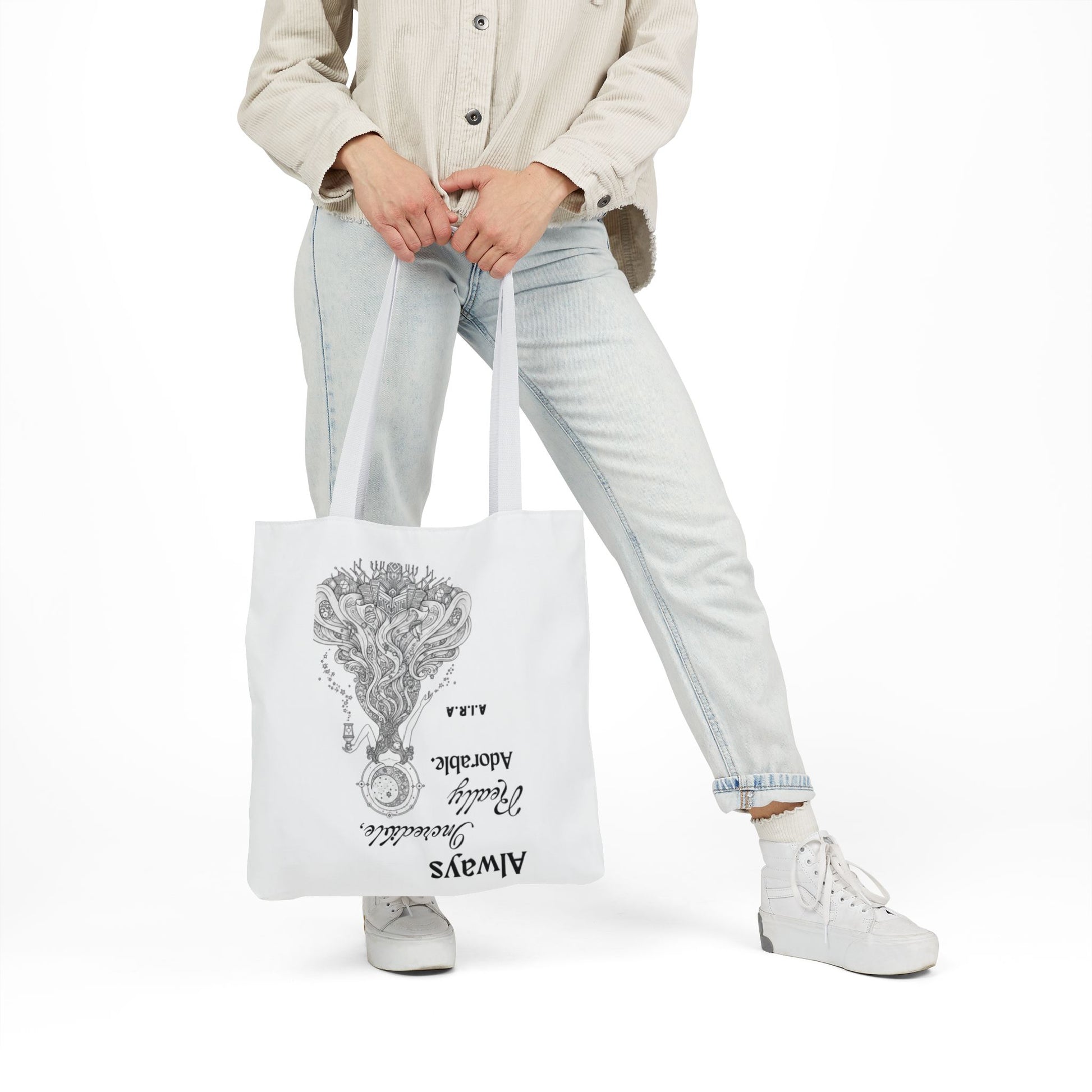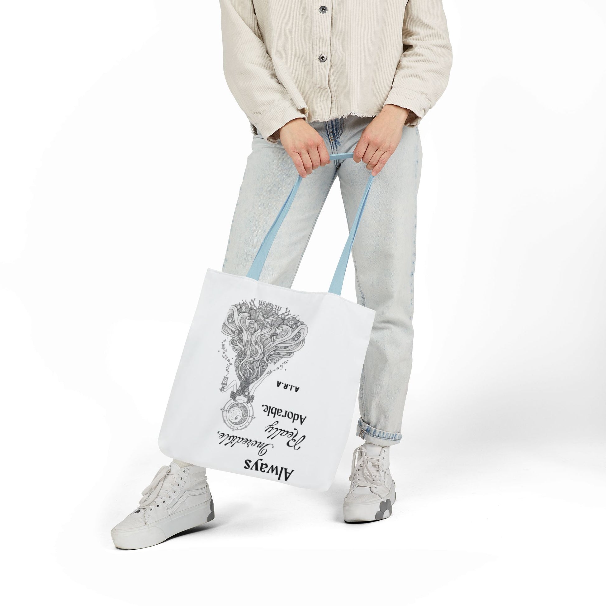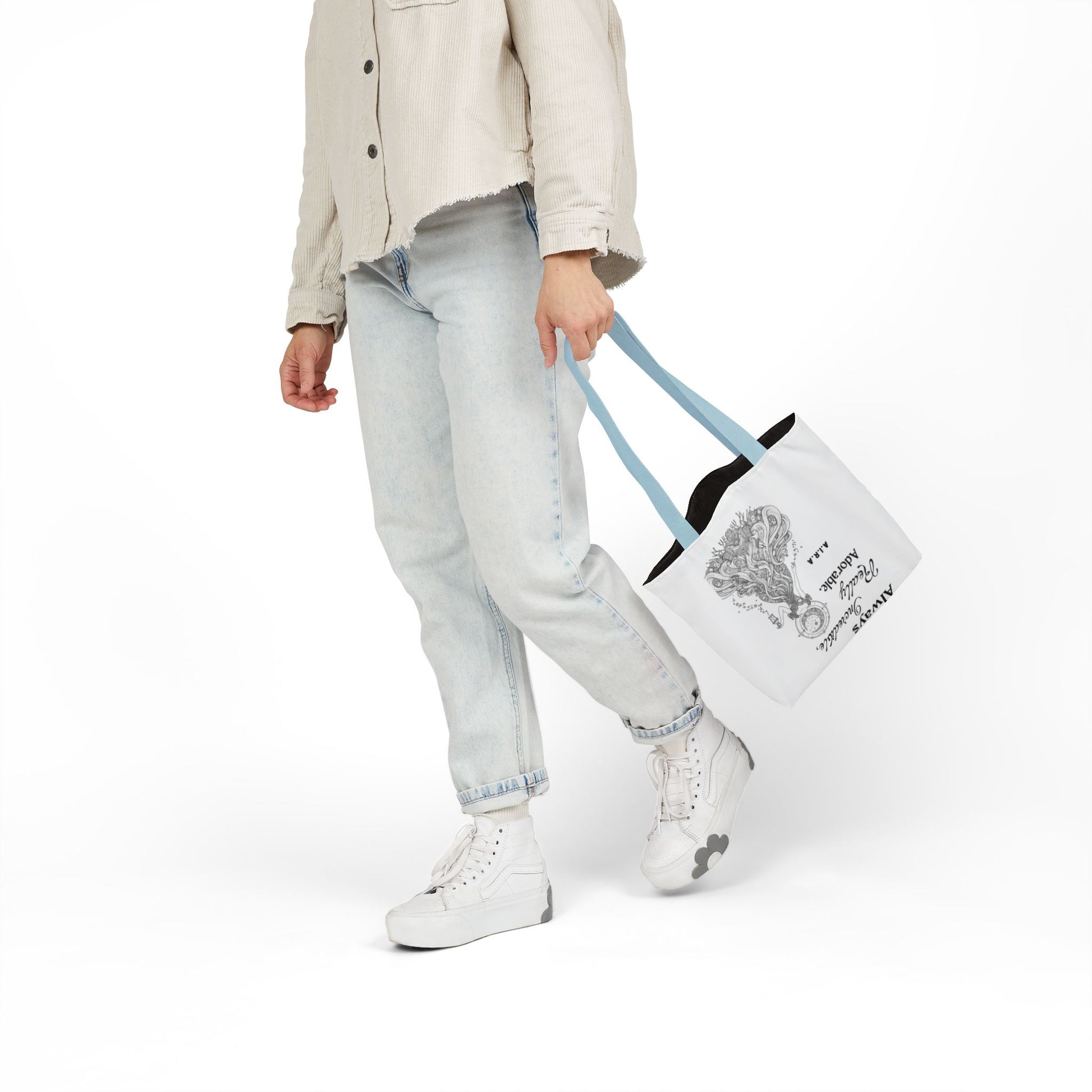A roomy, personality-forward canvas tote that carries more than just items — it carries a name. Each bag is printed edge-to-edge with a custom quote derived from the recipient’s initials, then dressed in one of five strap colors to match mood or style. The fine-weave polyester canvas feels soft to the touch, and boxed corners give the bag extra room so it holds groceries, sketchbooks, or a day’s worth of market finds without folding in on itself. Vibrant, all-over printing keeps the lettering and artwork lively and bold through daily use. Ships from the US and UK, so your personalized message arrives with care whether it’s across town or across the pond.