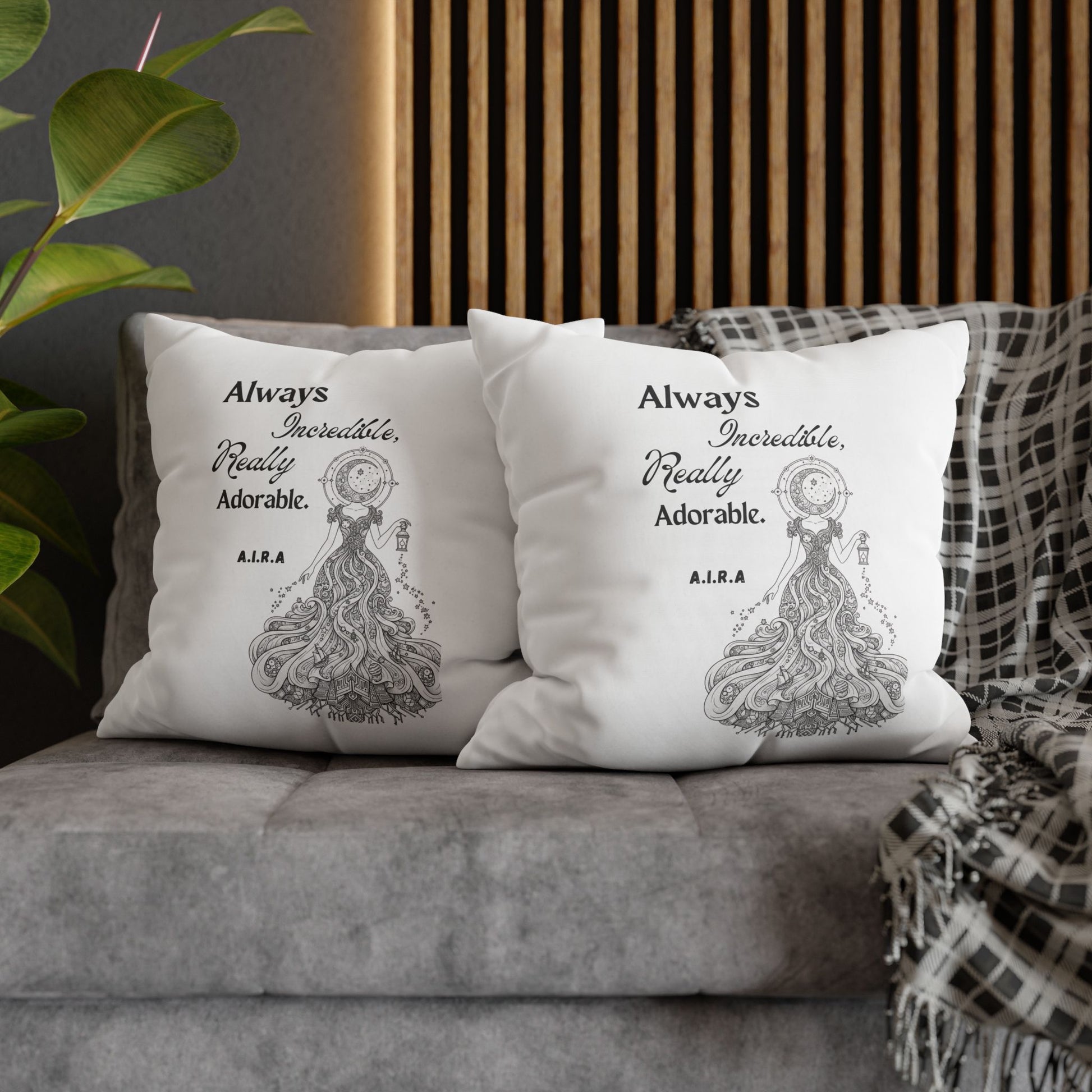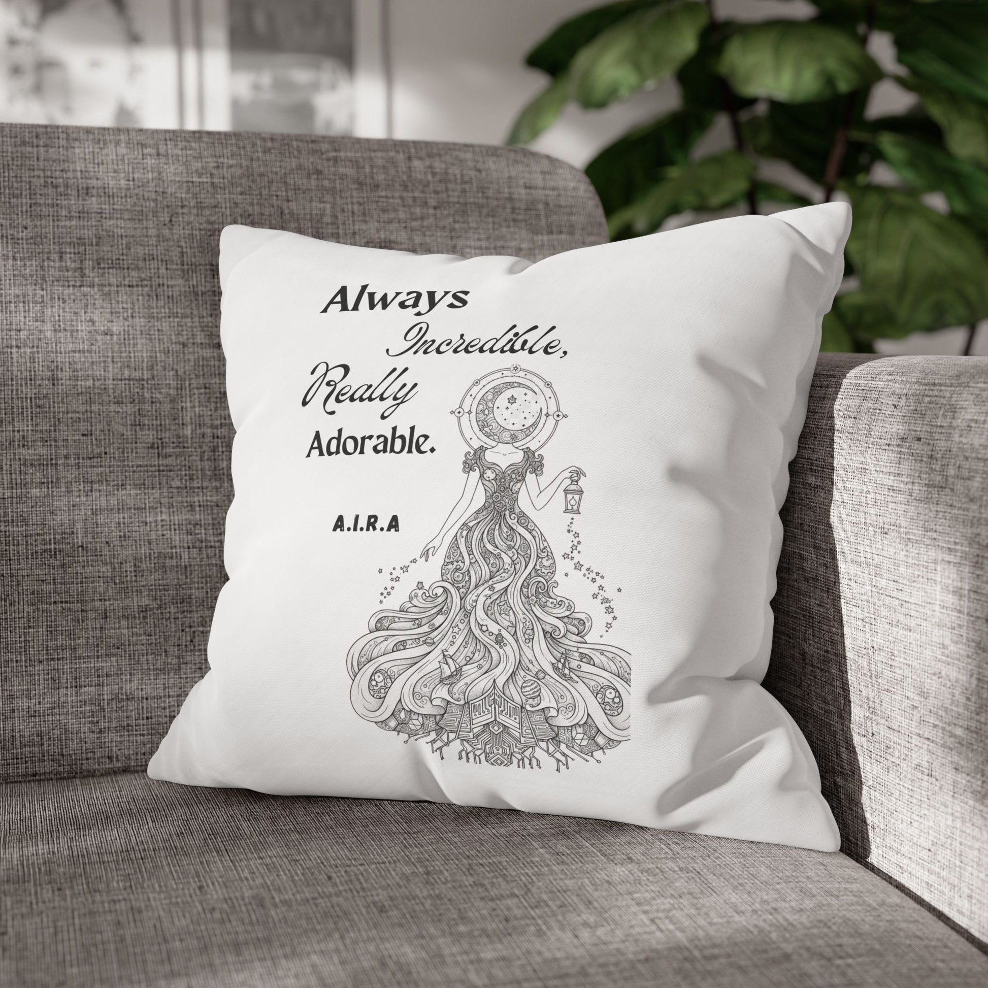This square poly canvas pillowcase brings a playful, personalized touch to living spaces. Each piece features initials-inspired quotes—short, witty lines generated from first-name initials—paired with complementary graphic elements. The double-sided prints keep both sides lively, with bright, saturated colors that hold up wash after wash. The concealed white metal zipper creates a clean edge while allowing easy removal; note that the insert is not included. Place it on a favorite armchair, layer it on a sofa, or tuck it into a reading nook to add personality and a smile to everyday moments.