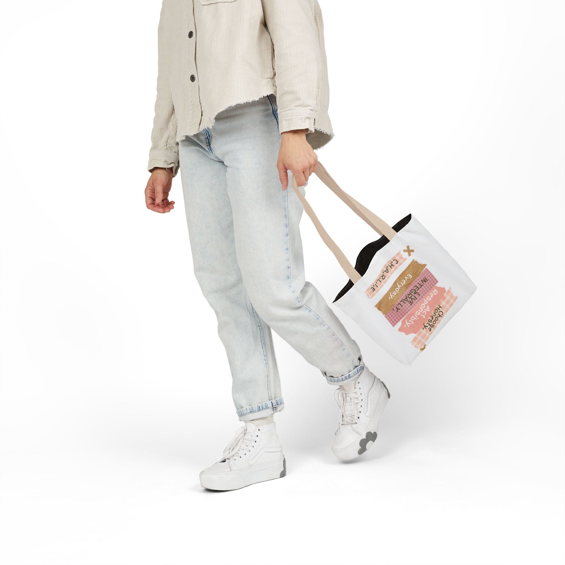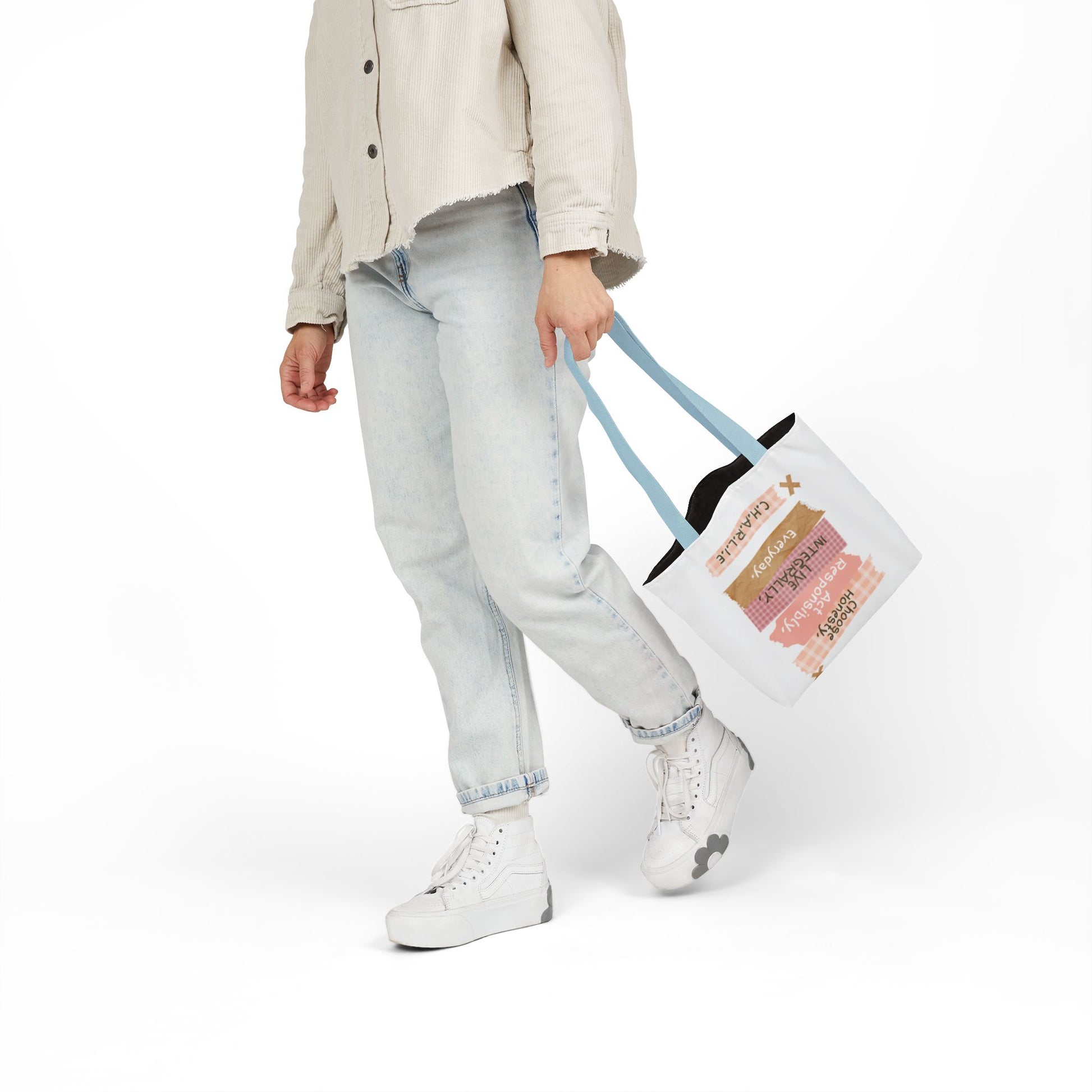A roomy, personality-forward canvas tote that carries more than just items — it carries a name. Each bag is printed edge-to-edge with a custom quote derived from the recipient’s initials, then dressed in one of five strap colors to match mood or style. The fine-weave polyester canvas feels soft to the touch, and boxed corners give the bag extra room so it holds groceries, sketchbooks, or a day’s worth of market finds without folding in on itself. Vibrant, all-over printing keeps the lettering and artwork lively and bold through daily use. Ships from the US and UK, so your personalized message arrives with care whether it’s across town or across the pond.