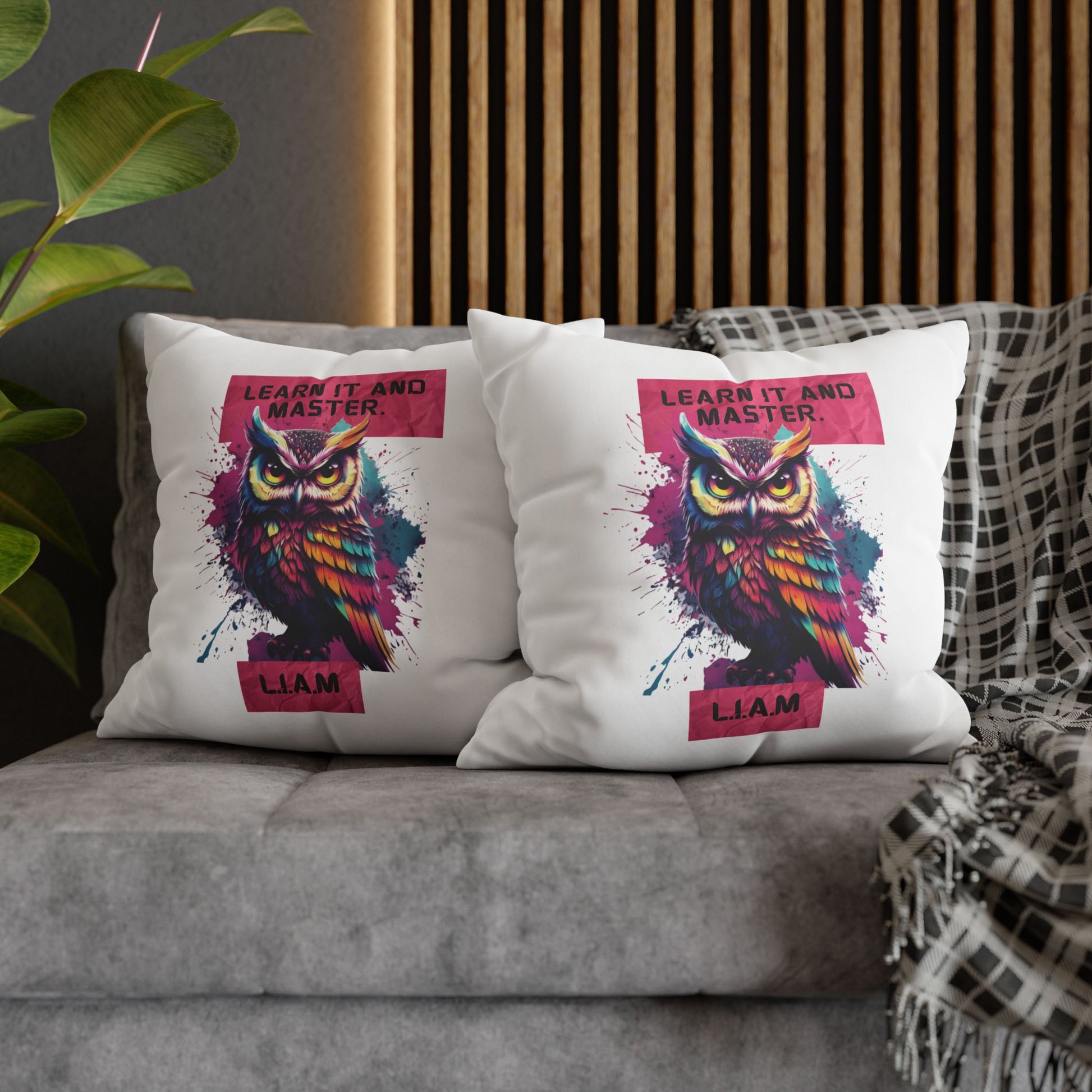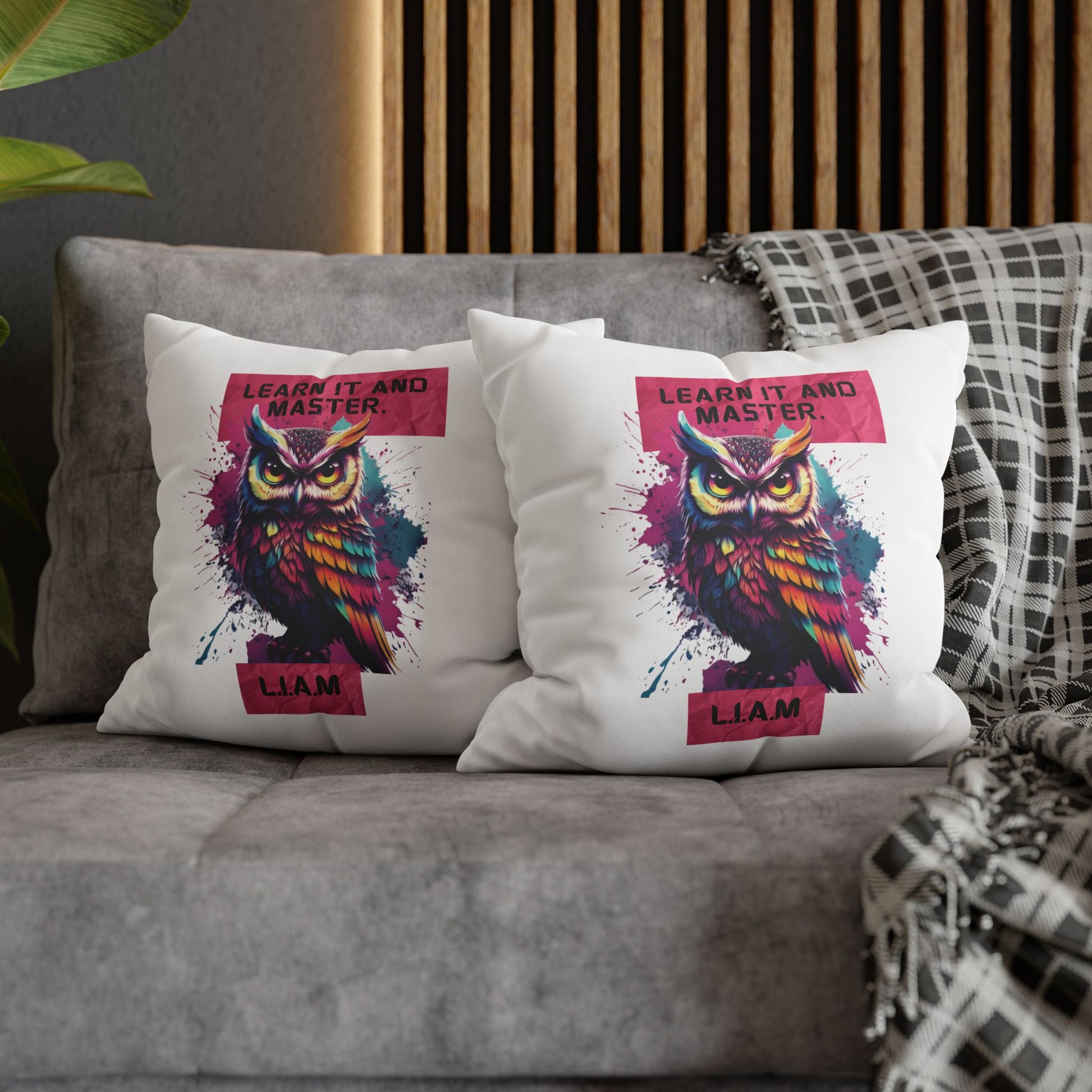 Personalized Initial Quote Owl — Custom Sayings on Square Poly Canvas Pillowcase
