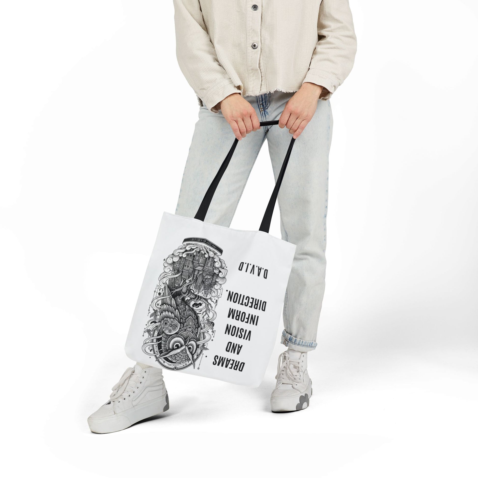 A roomy, personality-forward canvas tote that carries more than just items — it carries a name. Each bag is printed edge-to-edge with a custom quote derived from the recipient’s initials, then dressed in one of five strap colors to match mood or style. The fine-weave polyester canvas feels soft to the touch, and boxed corners give the bag extra room so it holds groceries, sketchbooks, or a day’s worth of market finds without folding in on itself. Vibrant, all-over printing keeps the lettering and artwork lively and bold through daily use. Ships from the US and UK, so your personalized message arrives with care whether it’s across town or across the pond.