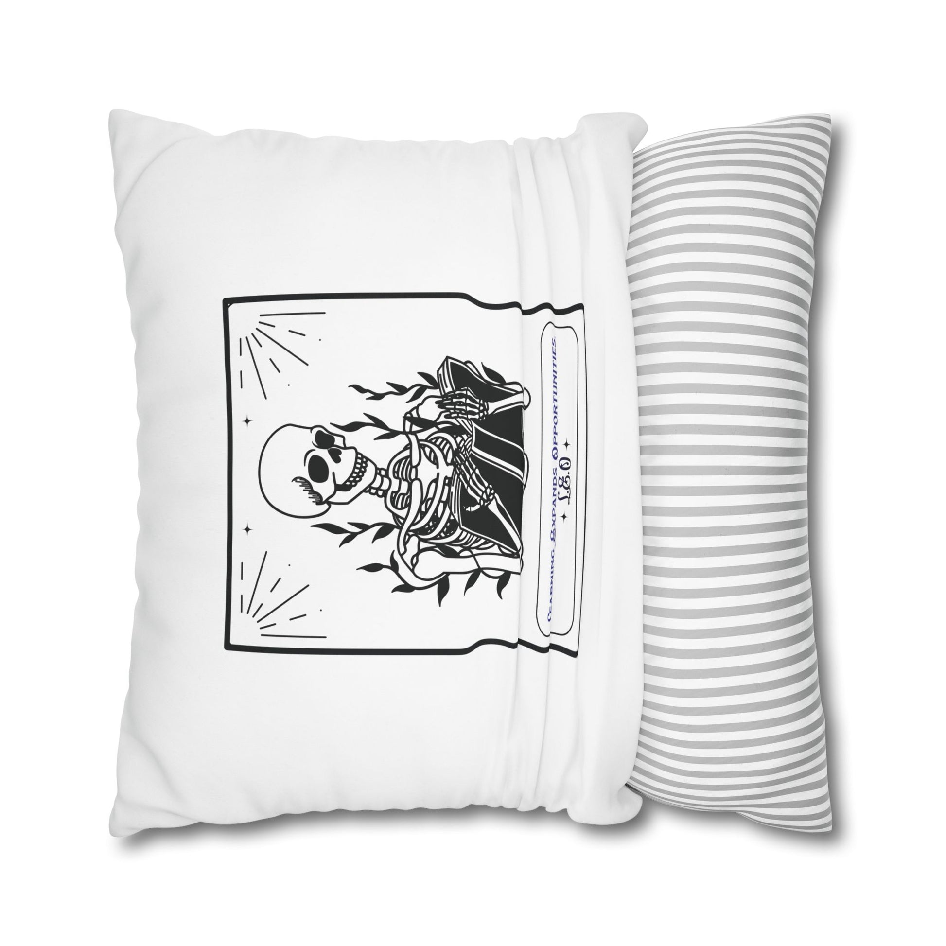 Personalized Initial Quote Skeleton — Custom Sayings on Square Poly Canvas Pillowcase