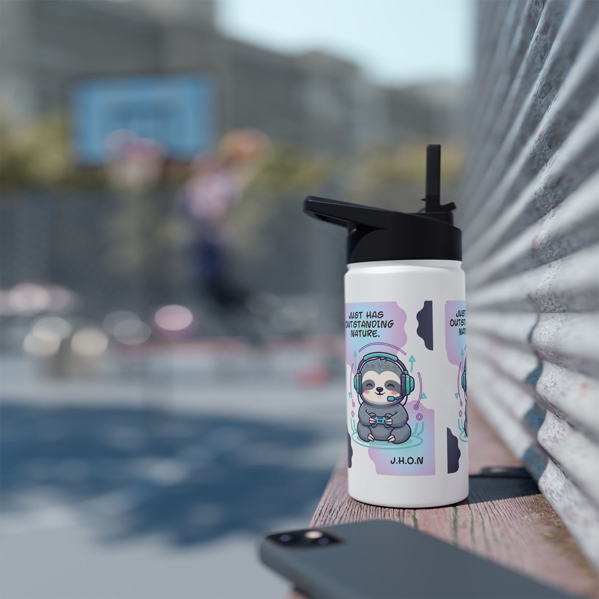 Personalized Initial Quote Sloth Gamer Stainless Steel Water Bottle