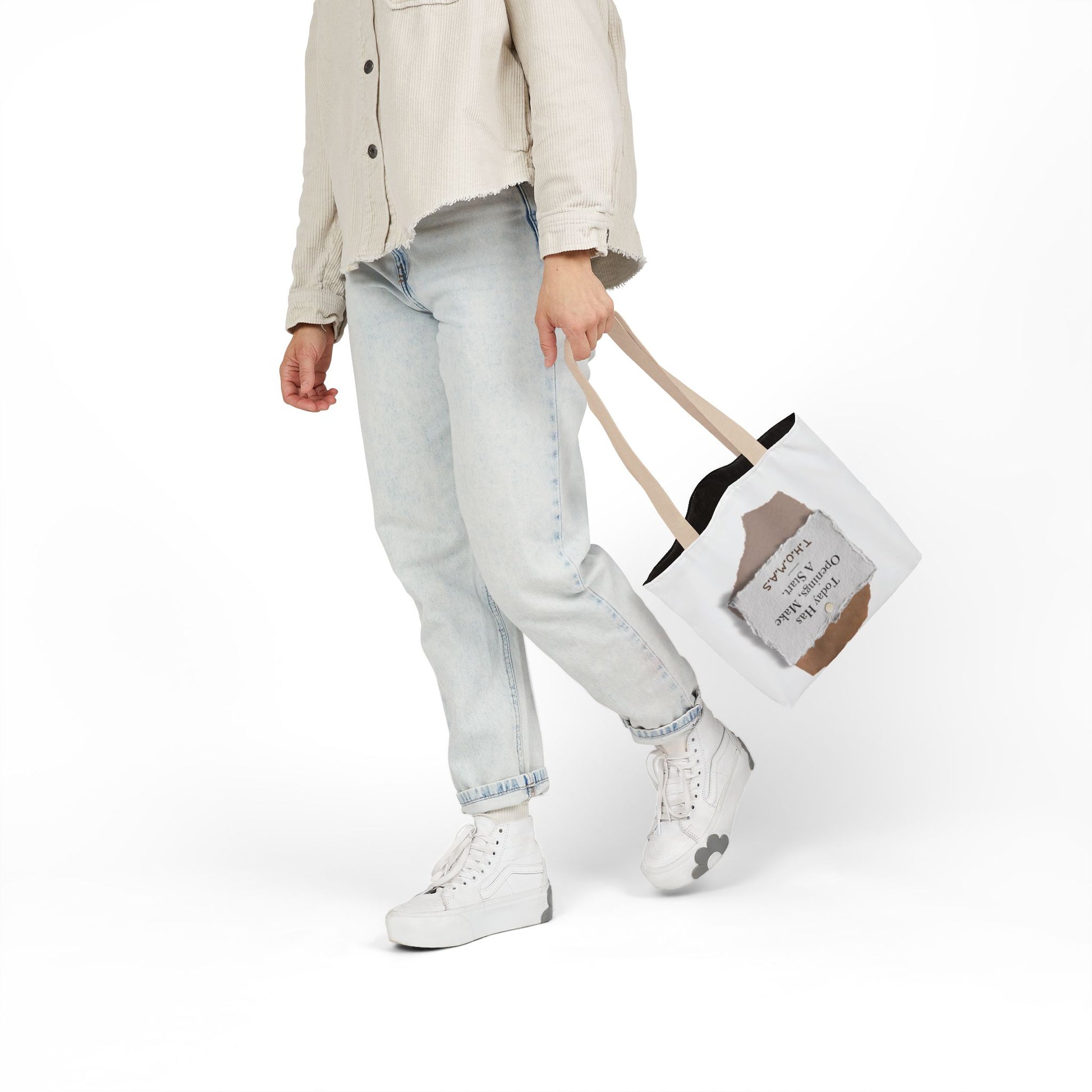Personalized Initial Quote Torn Paper Canvas Tote Custom Name