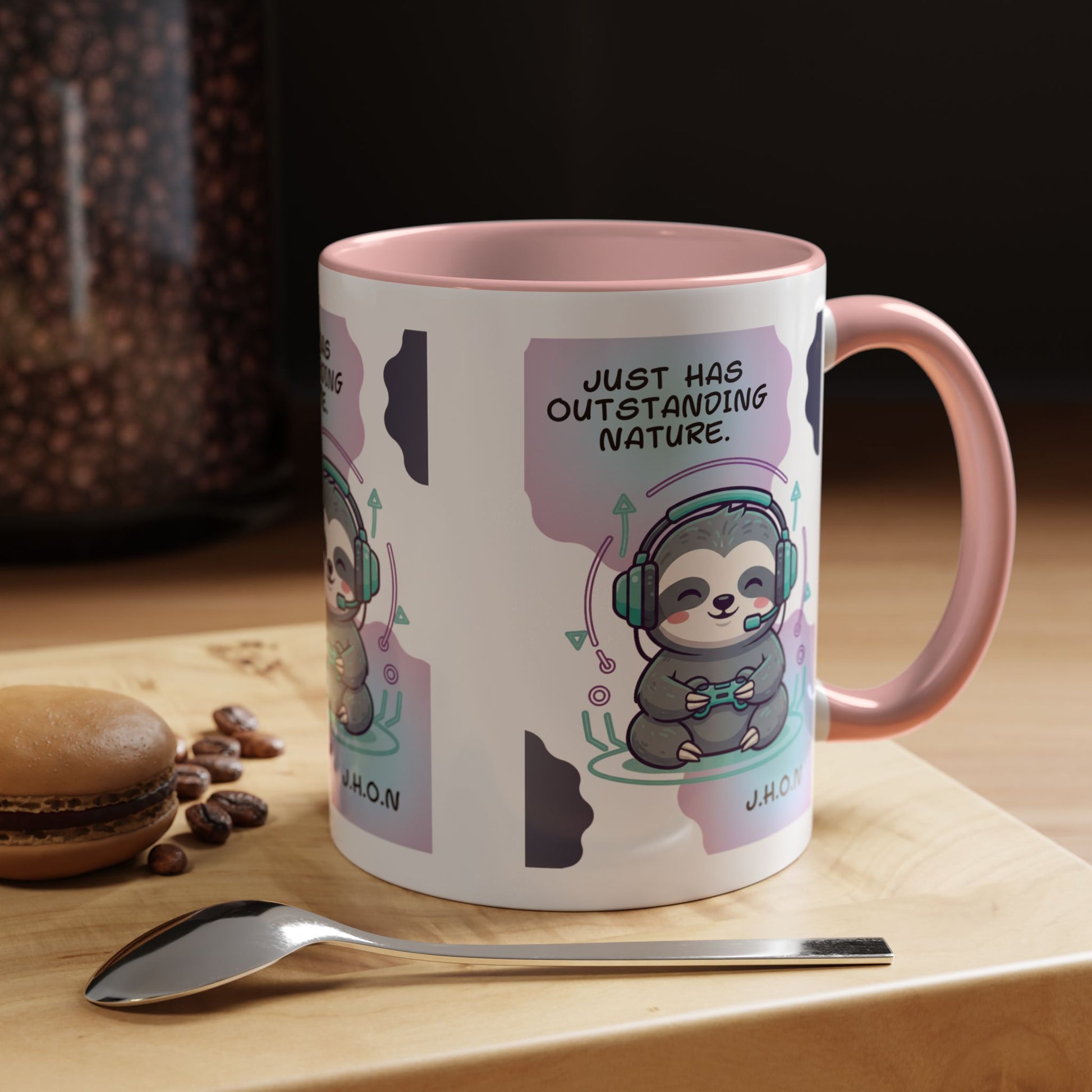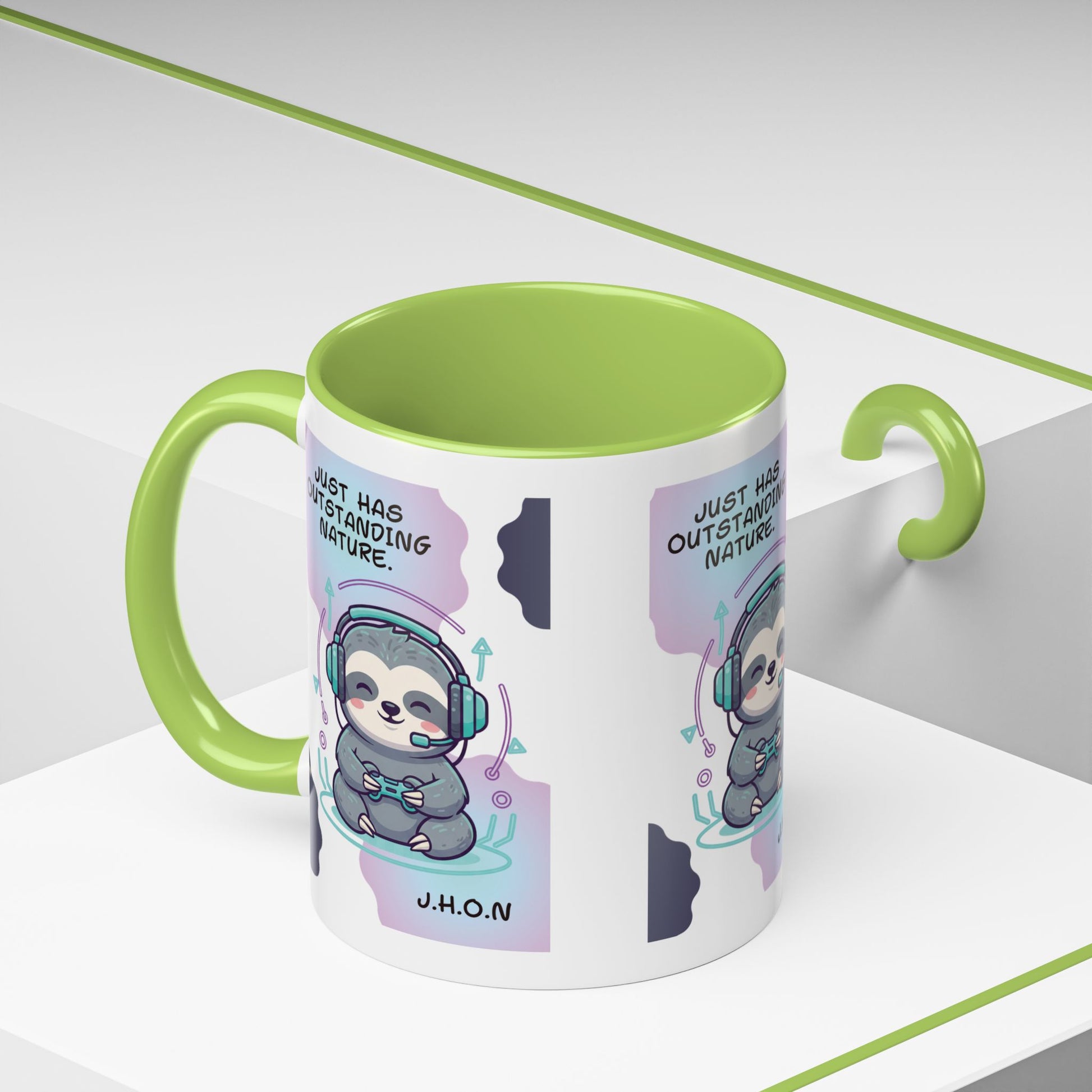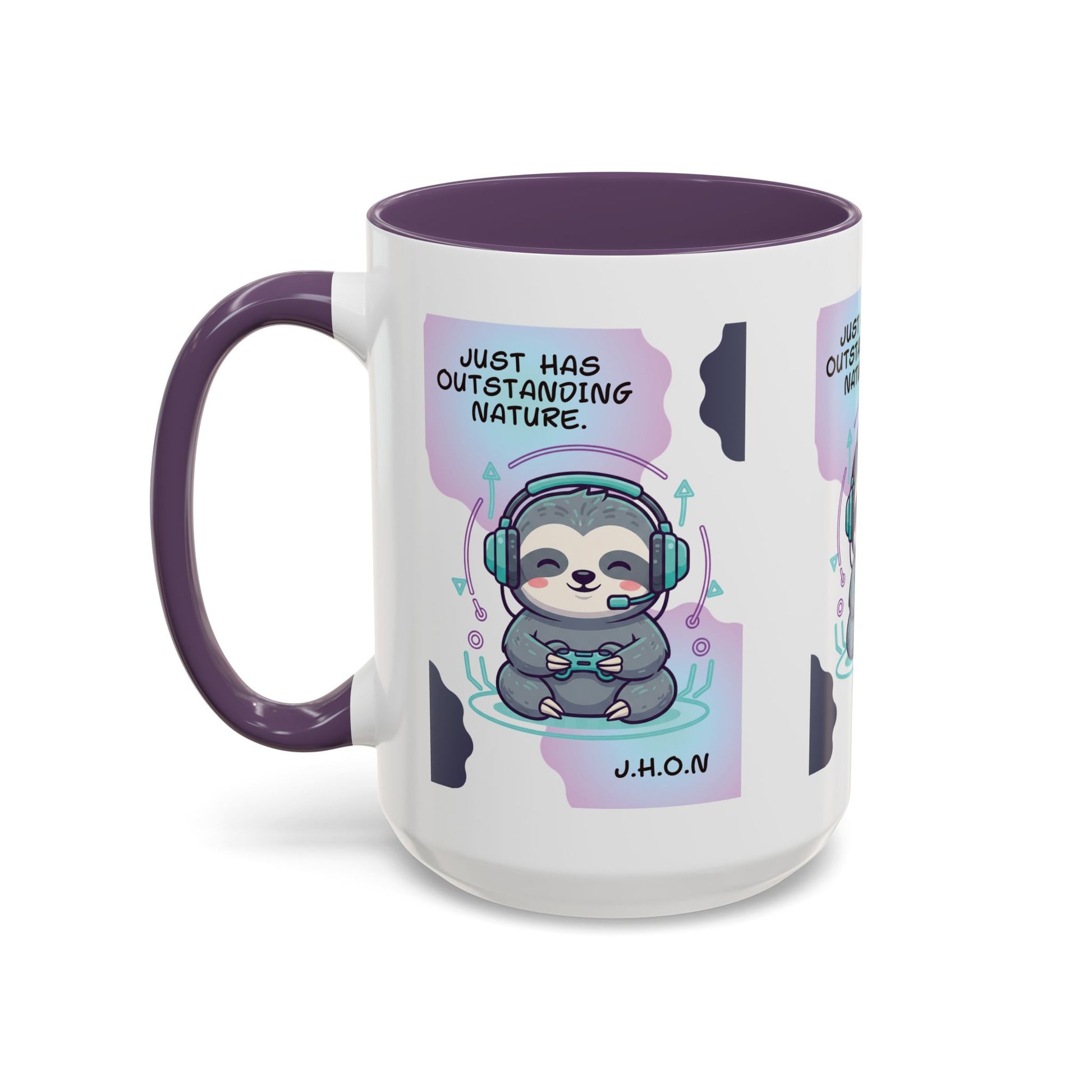 Personalized Initial Sloth Gamer Accent Coffee Mug