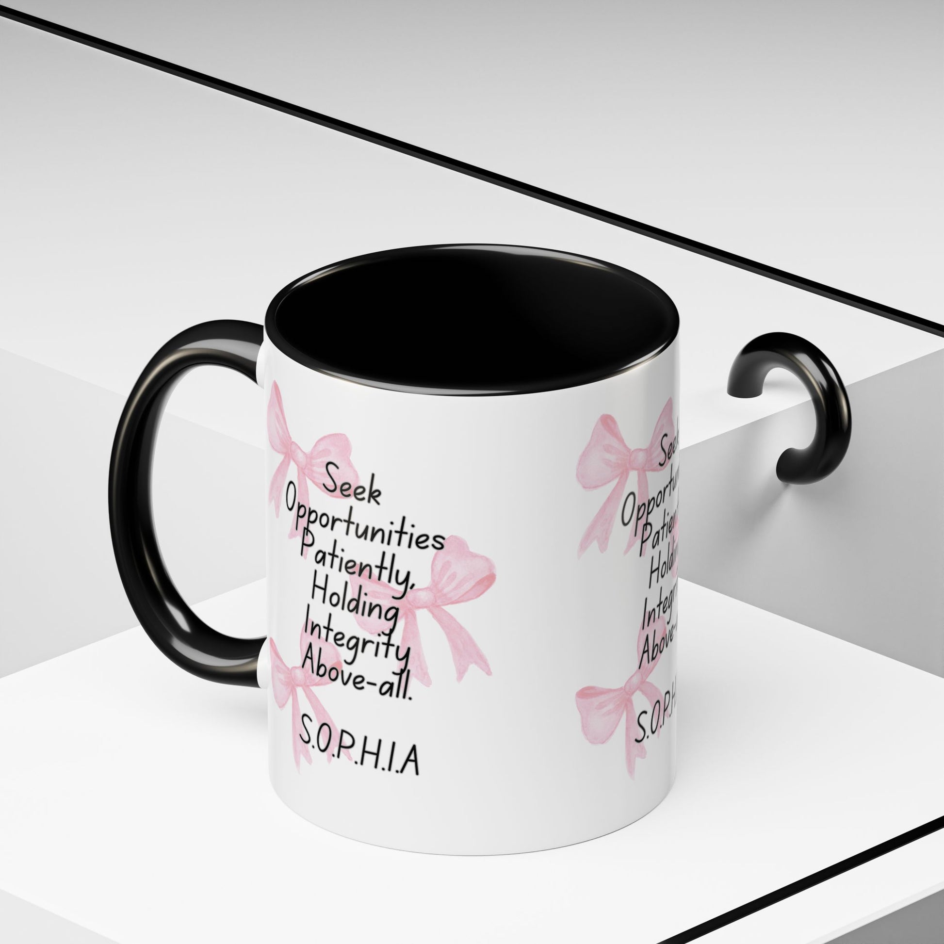 Personalized Pink Bow Accent Coffee Mug
