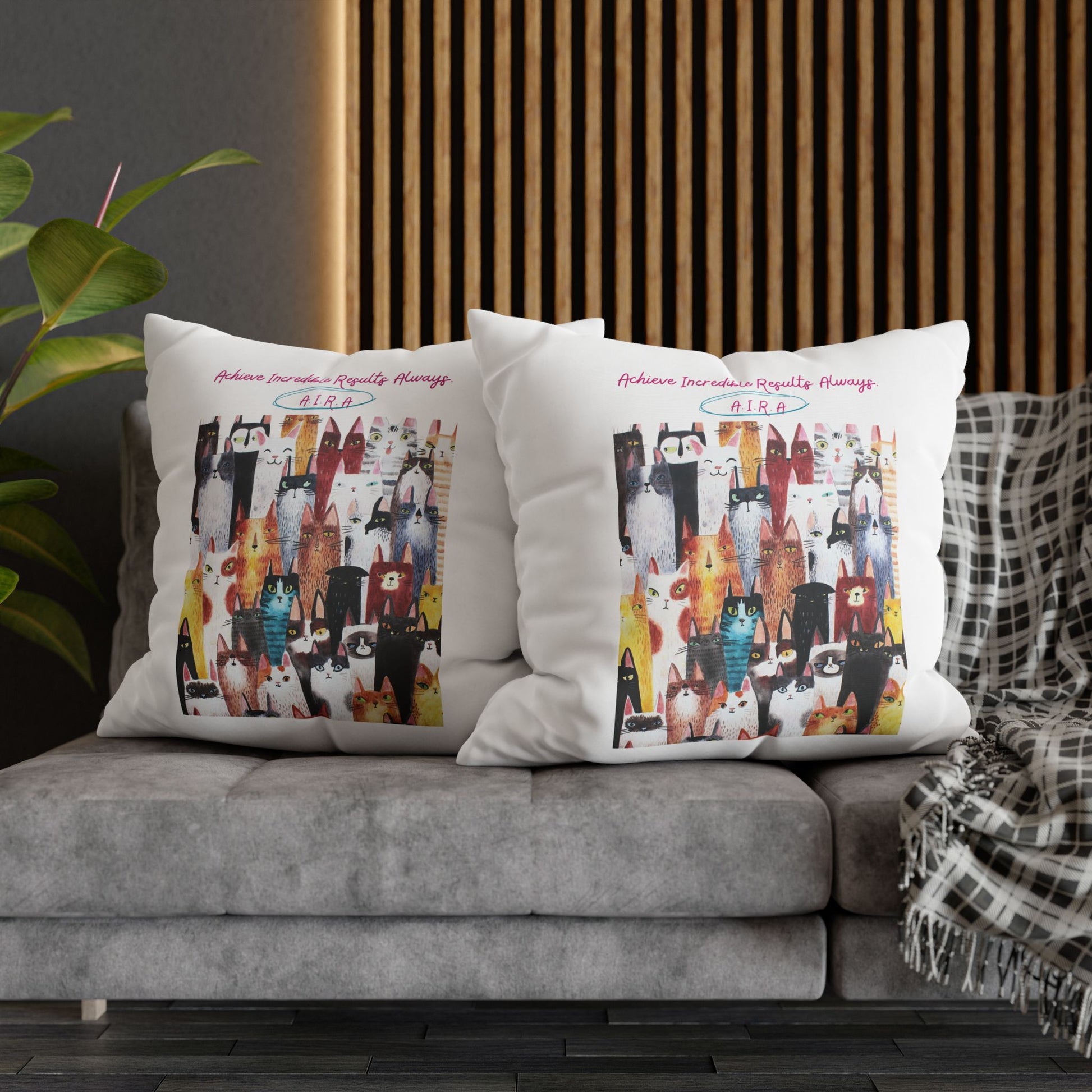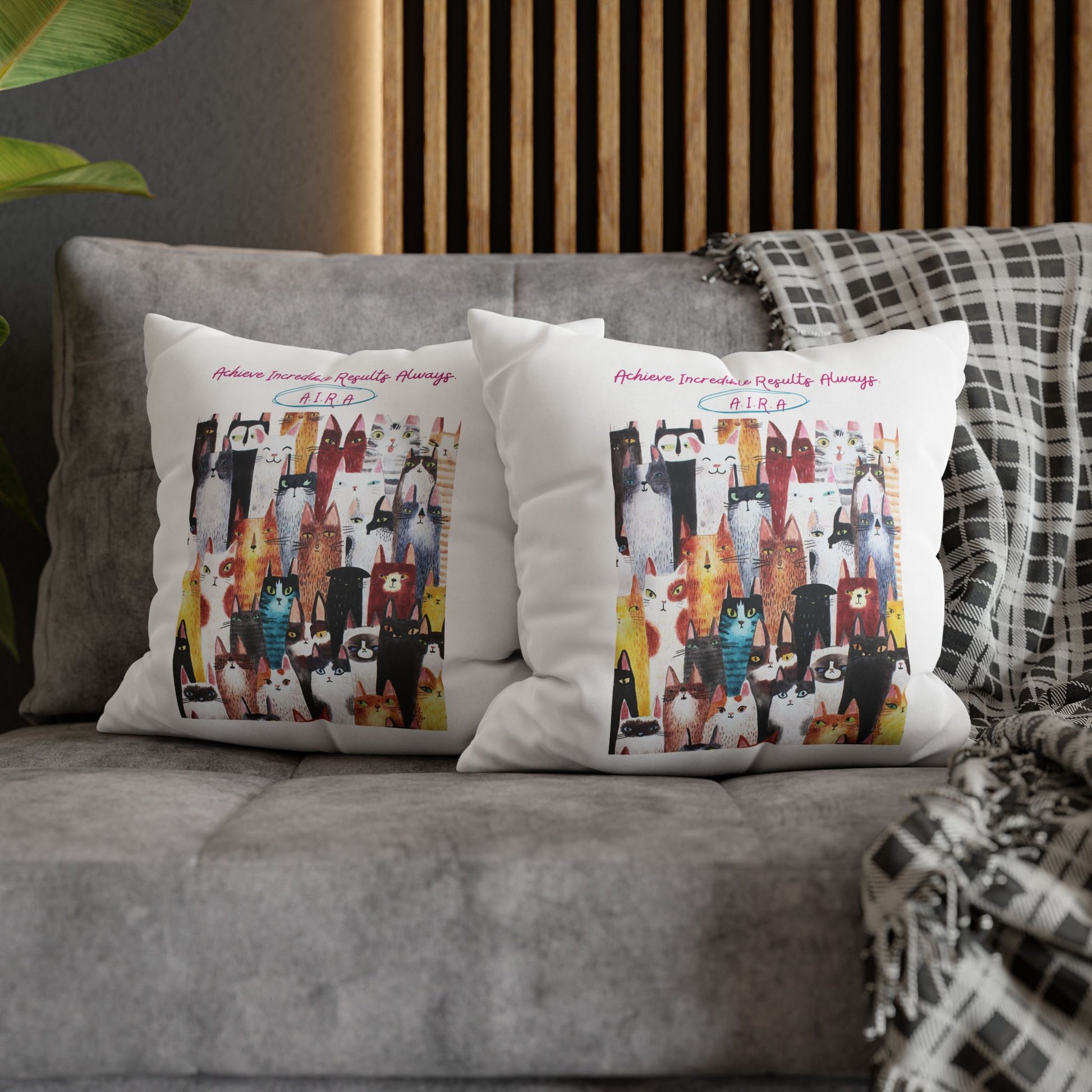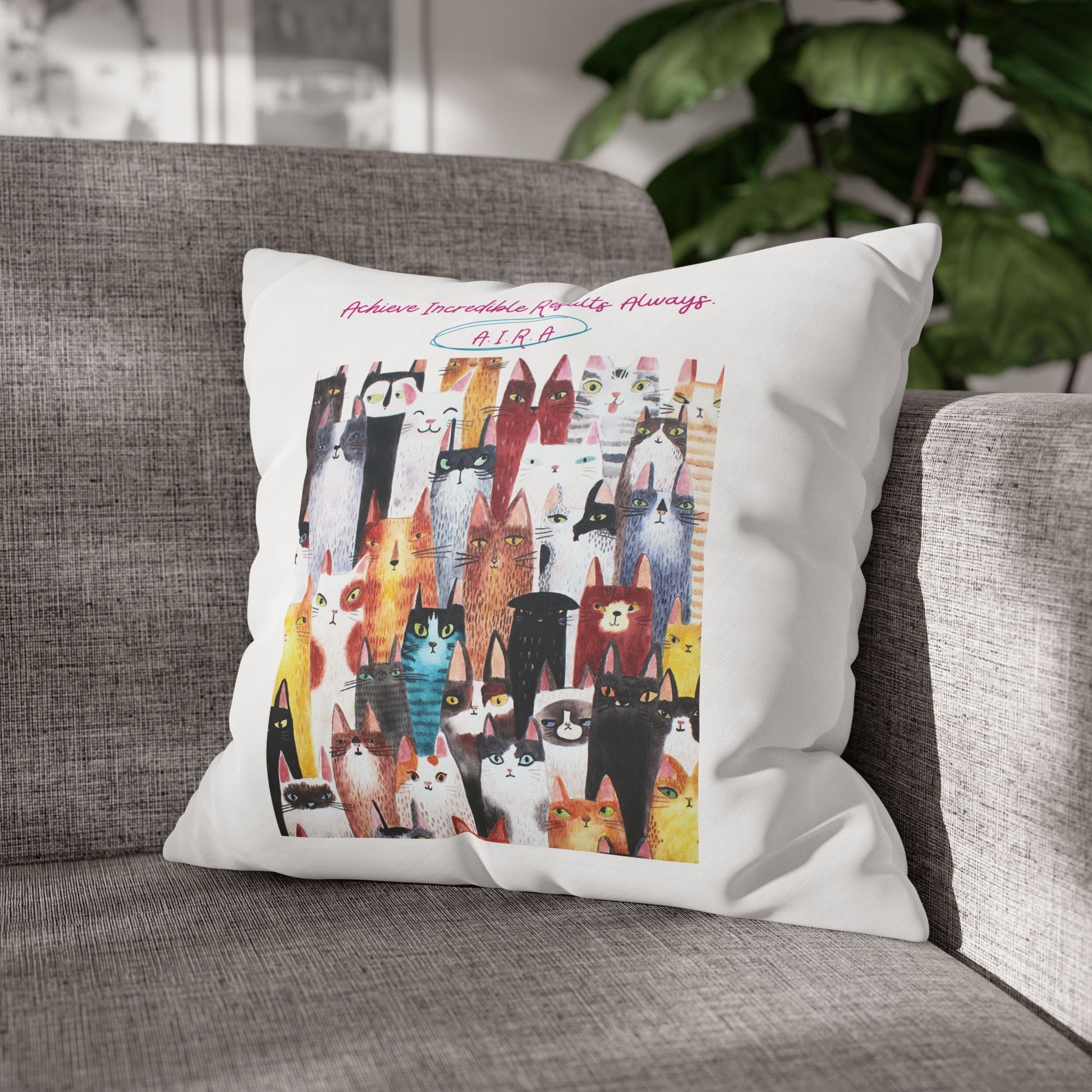 Personalized Initial Quote Cat Collage — Custom Sayings on Square Poly Canvas Pillowcase