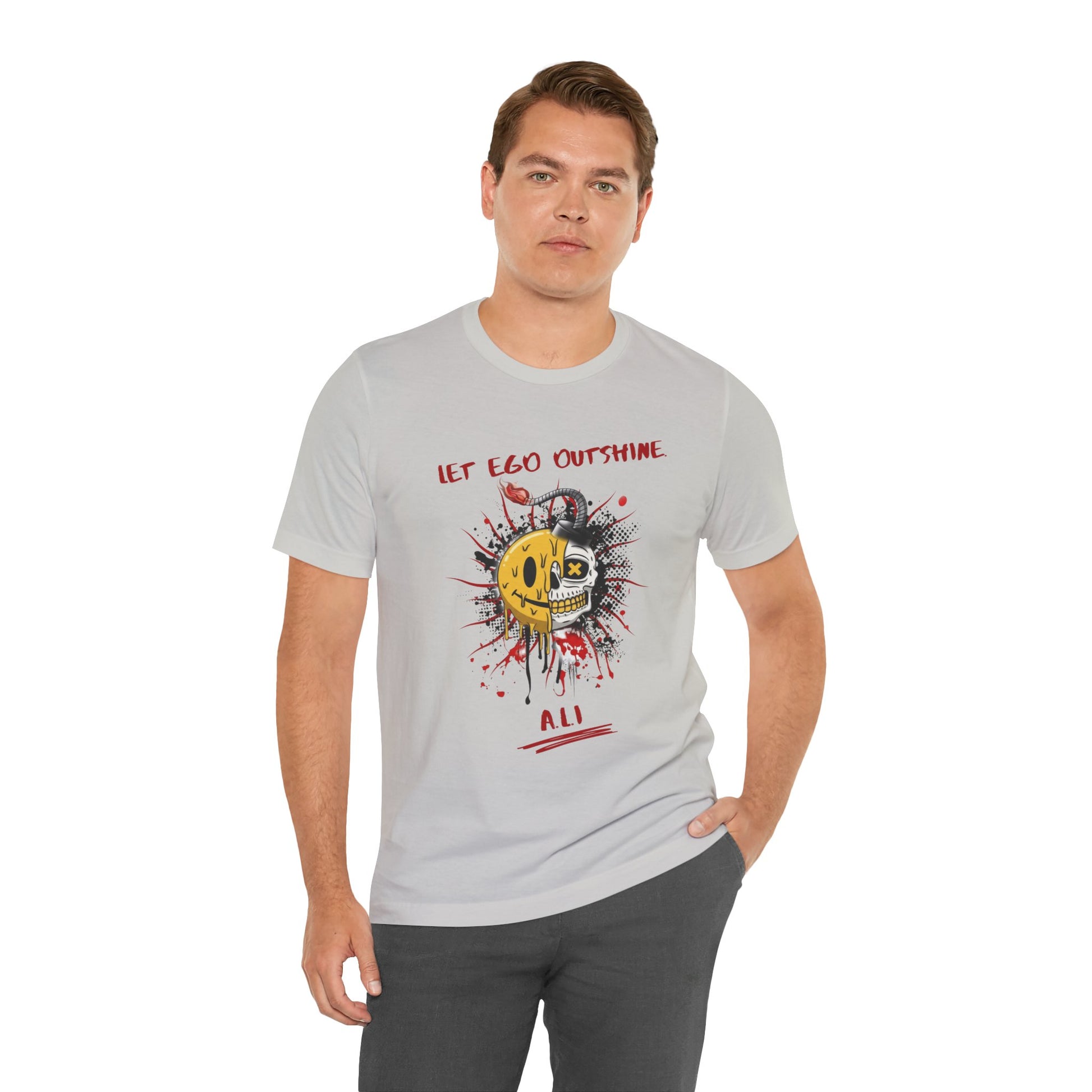 | A soft, breathable tee that carries attitude and story. This lightweight crew-neck sits comfortably against the skin and wears like a favourite right away. The front shows a bold, mixed-media graphic — half-smiley, half-mechanic skull — splattered with ink and paint strokes and hand-lettered text that reads like a rallying call. It’s the sort of shirt you reach for when you want an offbeat, expressive layer that holds up to everyday movement. Wear it solo with jeans to let the artwork speak, or layer under a jacket when the day needs a little grit. The construction keeps its shape: ribbed collar, shoulder tape, and side seams mean it stays neat after washes. Tear-away label and breathable Airlume combed cotton make it comfortable for long wear. |